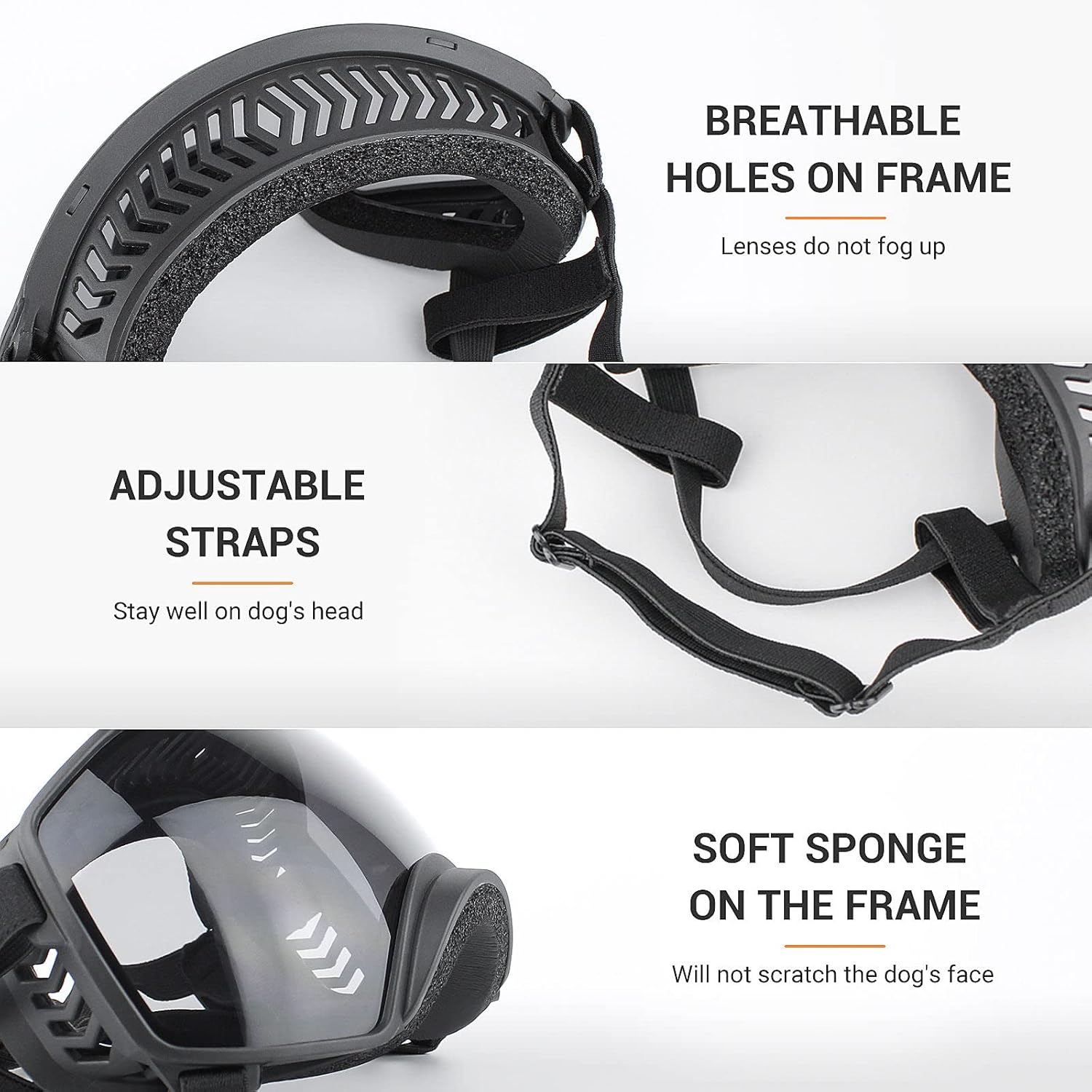 - Bequemes Design: Das Band ist flexibel verstellbar, um den Kopf Ihres Hundes sicher zu fixieren, so dass er ungehindert hecheln, fressen, kauen, trinken und bellen kann. Die transparente Brille ist atmungsaktiv, um das Beschlagen der Gläser zu