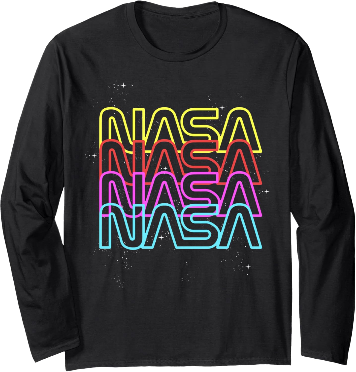 NASA Neon Rainbow Repeat Text Logo Langarmshirt