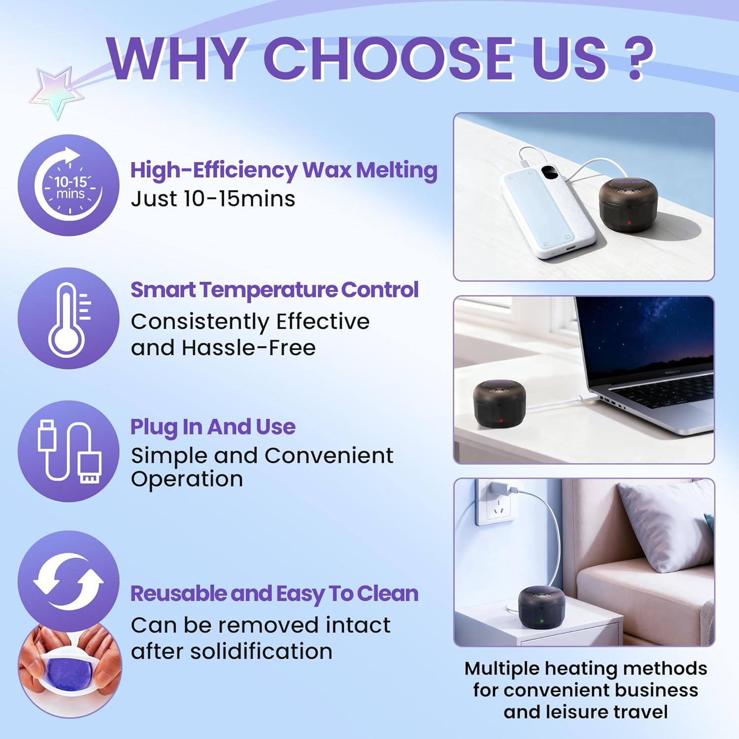 - 【Konstante Temperatur für optimales Wachsen】Der Wachswärmer verfügt über eine intelligente Temperaturregelung. Sobald das Wachs die ideale Schmelztemperatur erreicht hat, leuchtet die blaue Anzeige und hält automatisch eine konstante Temperatur