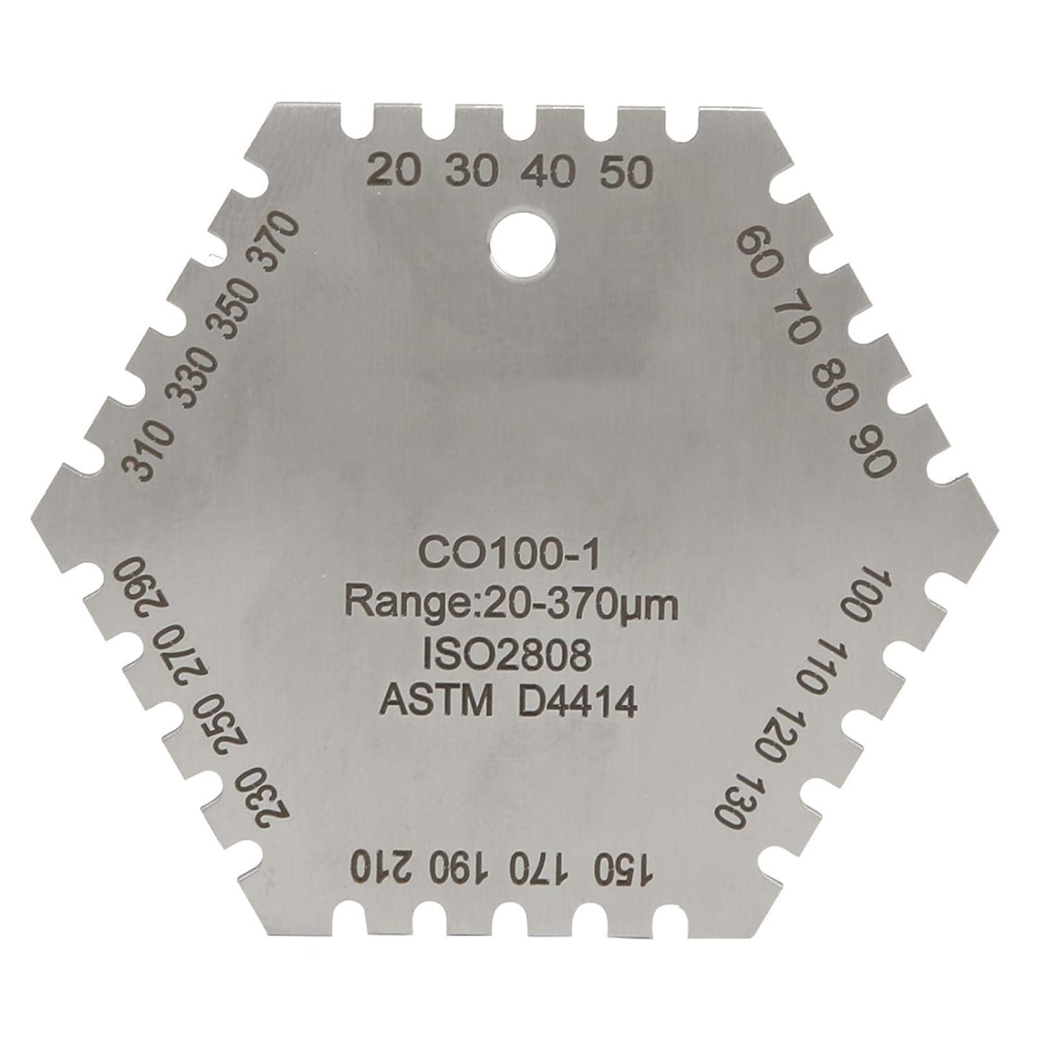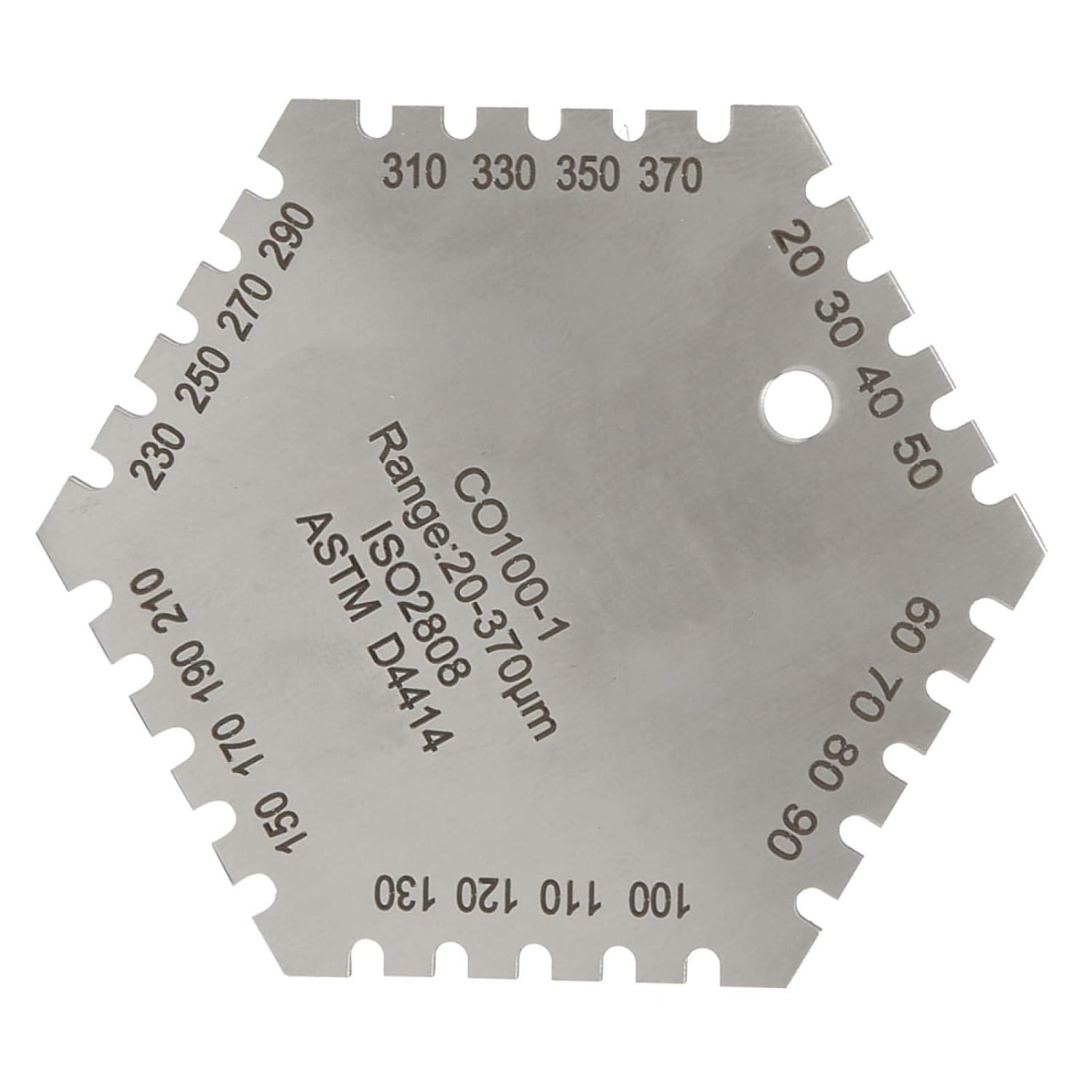 - 【MIT KLARER SKALA】 Der Nassfilmkamm ist sechseckig, der Massstab dieses Produkts ist klar und der Messdickenbereich beträgt 20-370 um. Dieses Produkt hat beidseitig eine Waage, mit der die Markierungen aus allen Richtungen abgelesen werden können