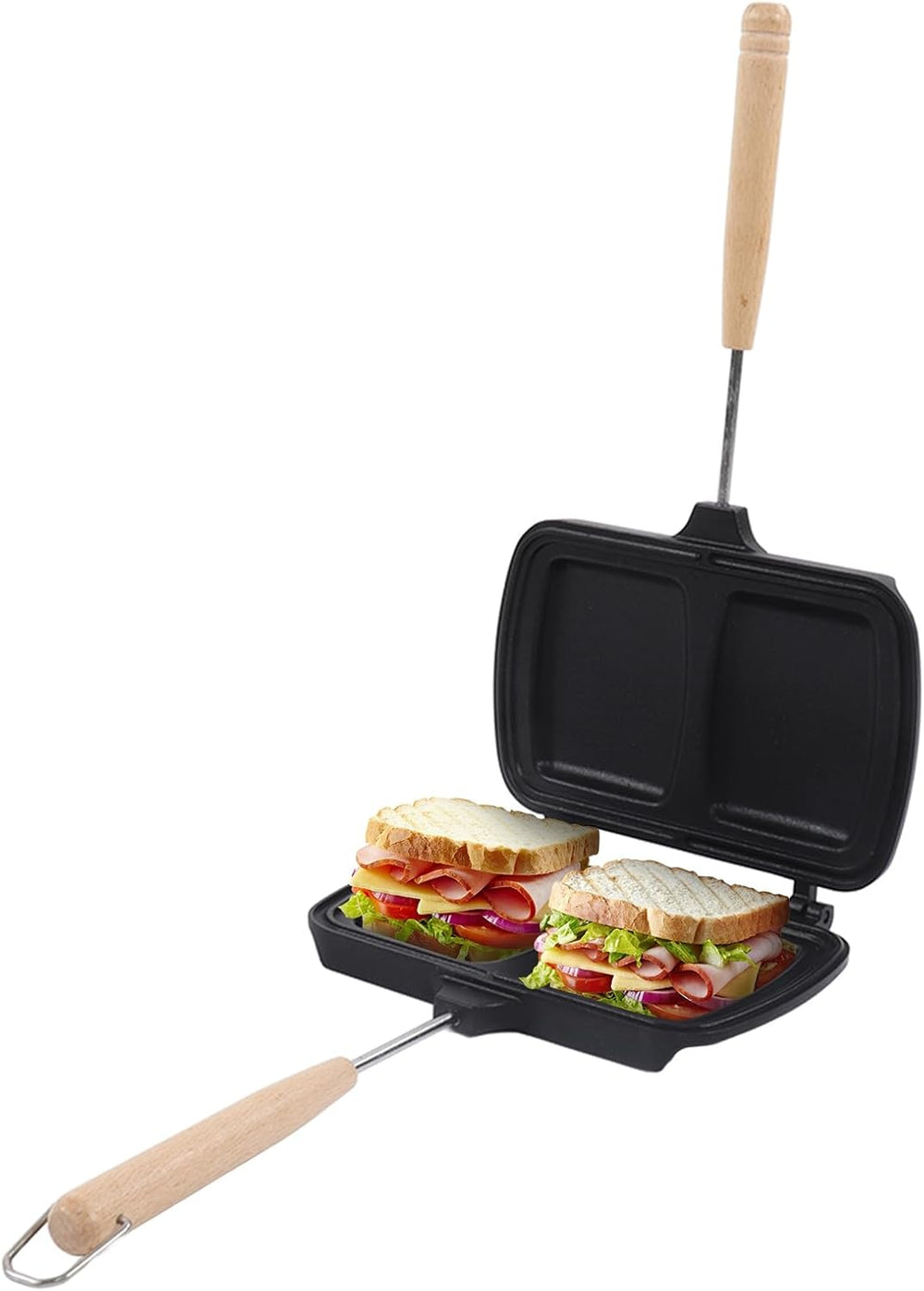 - ANTIHAFTIGE WÄRMEÜBERTRAGUNG: Der stromlinienförmige Topfkörper der Sandwichpfanne, die physikalischen Eigenschaften sind nicht leicht zu haften, weniger Kraftstoffverbrauch und eine hohe Wärmeübertragungseffizienz.