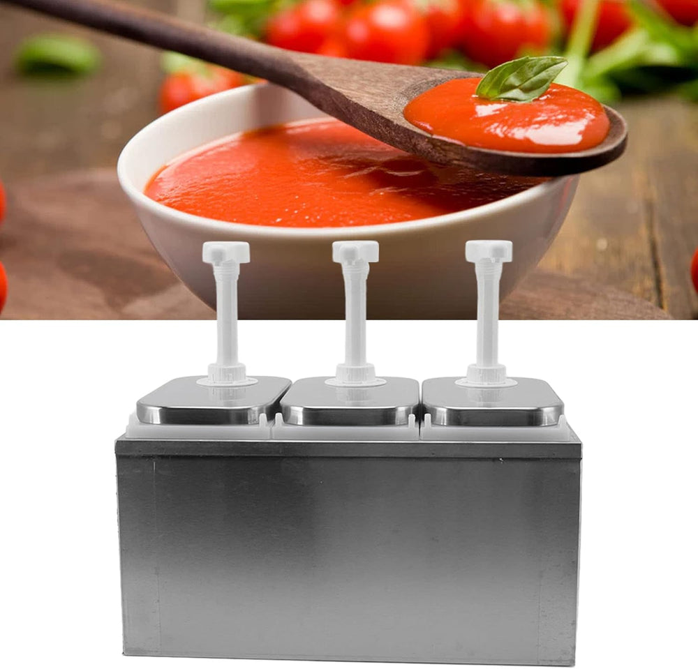 - SICHER UND GESUND: Der Gewürzspender besteht aus lebensmittelechtem Edelstahl und Kunststoffmaterial, das sicher und gesund für den menschlichen Körper ist. Das Design der Gewürzpumpstation ist vernünftig, der quantitative Druckkopf kann in alle