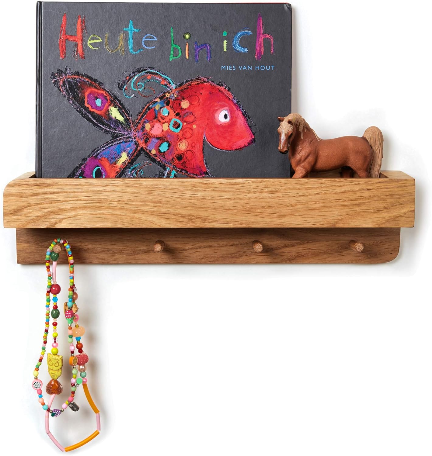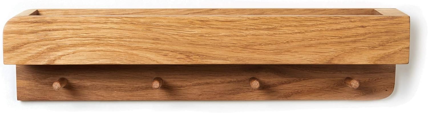 - PRAKTISCHES UND EXKLUSIVES MULTIFUNKTIONS-WANDREGAL mit Garderobenhaken aus massivem Eichenholz mit extrem vielseitigen Einsatzmöglichkeiten und modernem Design.