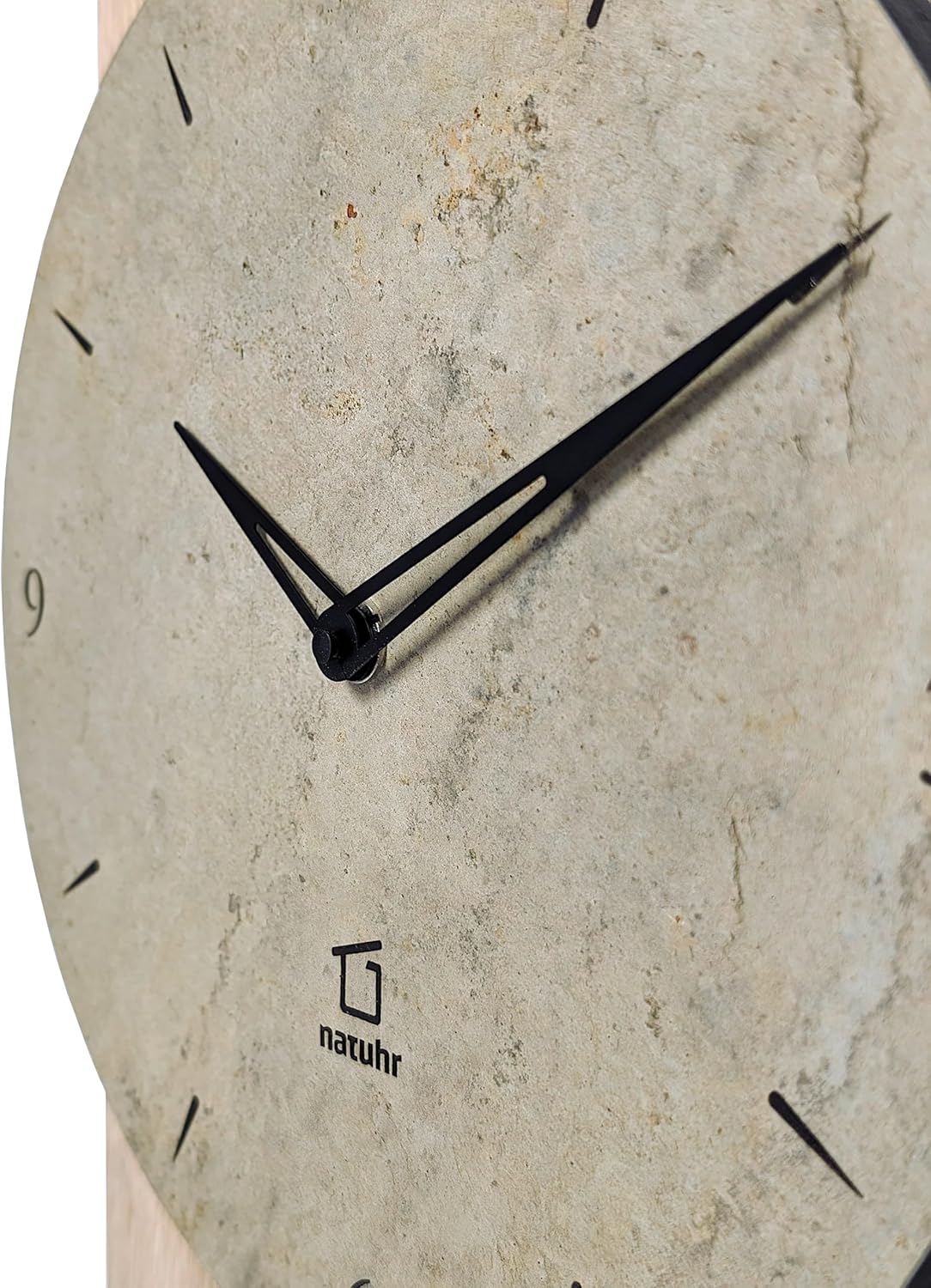 - Hochwertige Beschichtung aus echtem Schiefer als Zifferblatt mit schwarzem Druck und filigranen schwarzen Zeigern aus Metall.