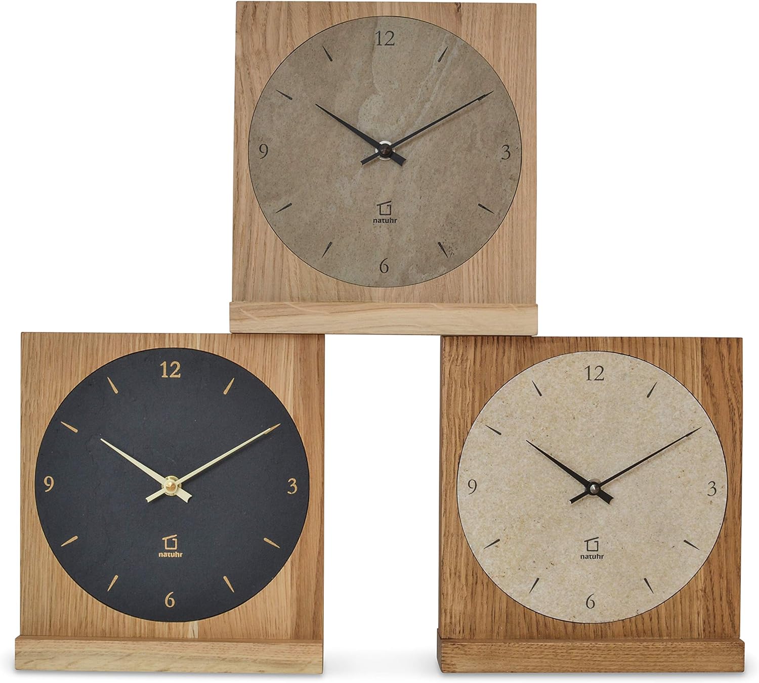 - Holz Tischuhr mit stabilem Stand durch massiven Standfuss aus Eiche mit vielseitigen Einsatzmöglichkeiten.