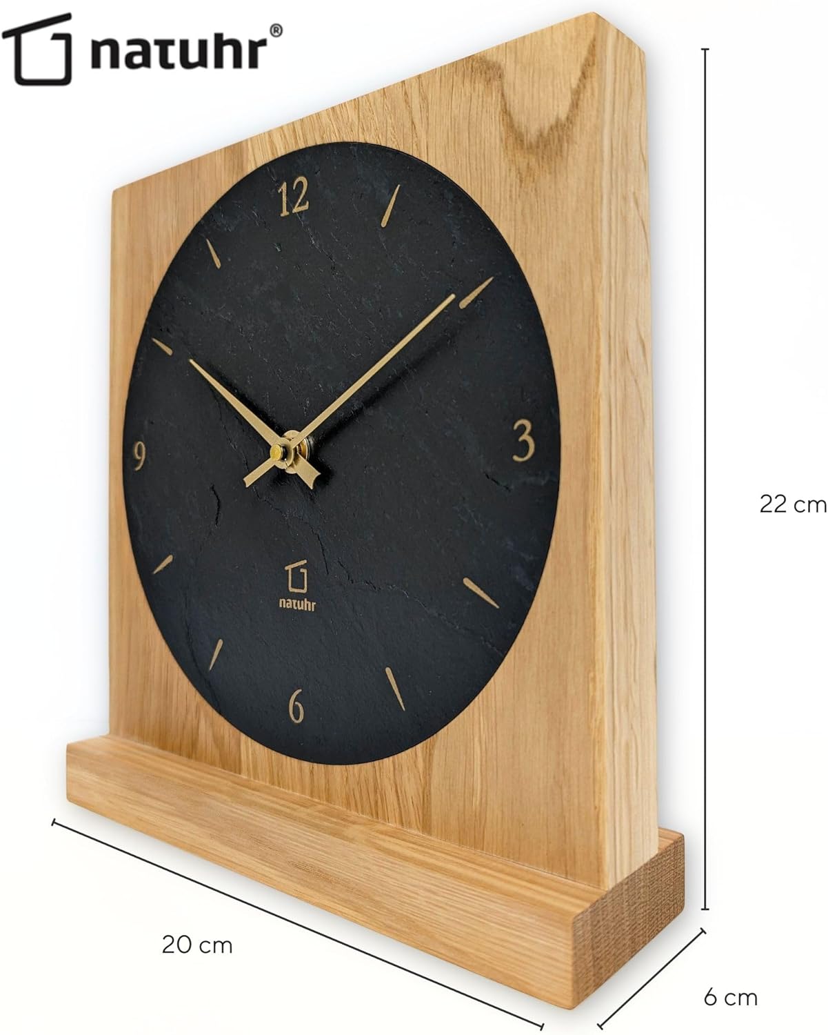 - Holz Tischuhr mit stabilem Stand durch massiven Standfuss aus Eiche mit vielseitigen Einsatzmöglichkeiten.