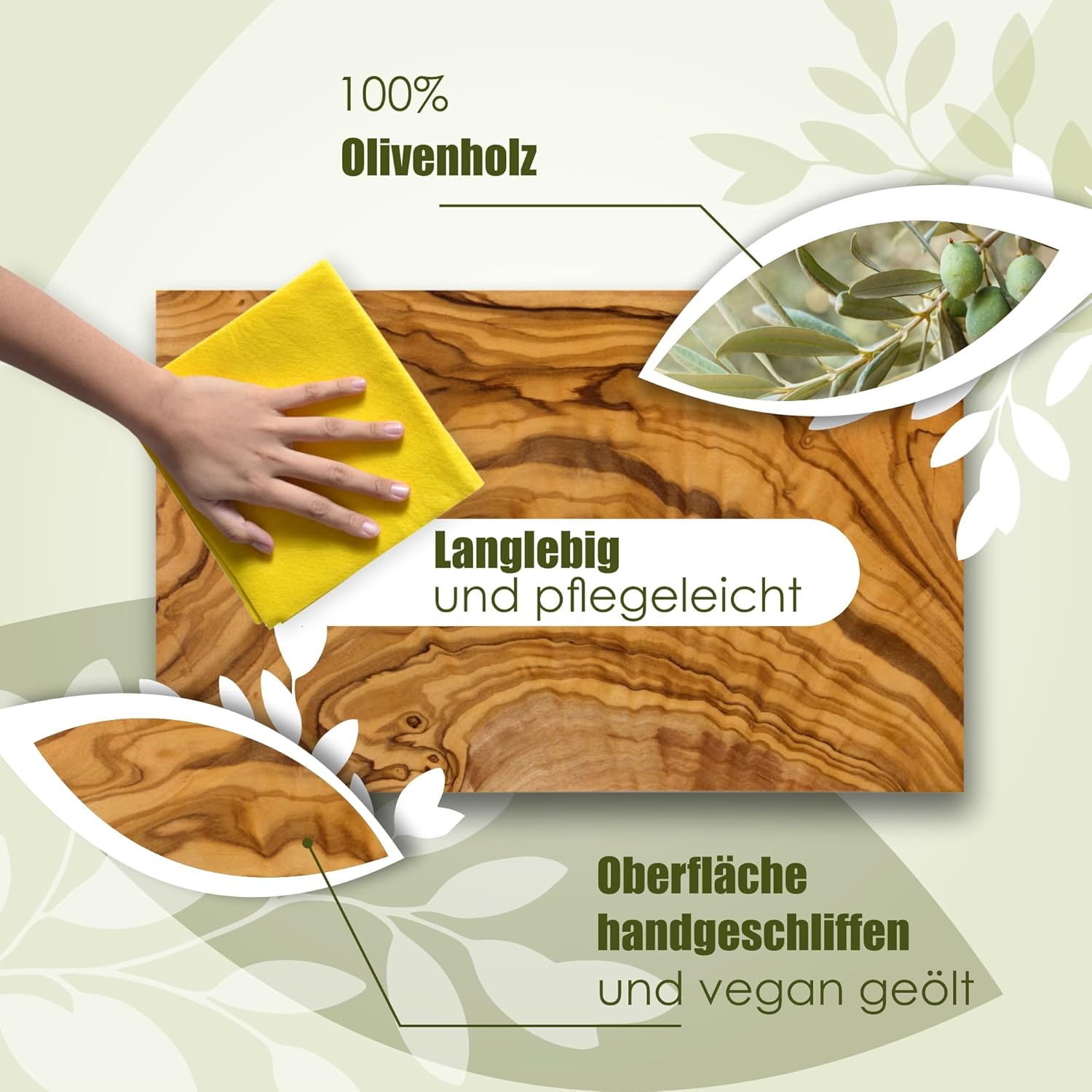 • ✔ NACHHALTIG: Für unser Olivenholz Schneidebrett verwenden wir nur Holz, welches beim Rückschnitt der Bäume als Schnittgut anfällt. Lediglich geölt ist es so naturbelassen wie möglich, wiederstandsfähig und langlebig