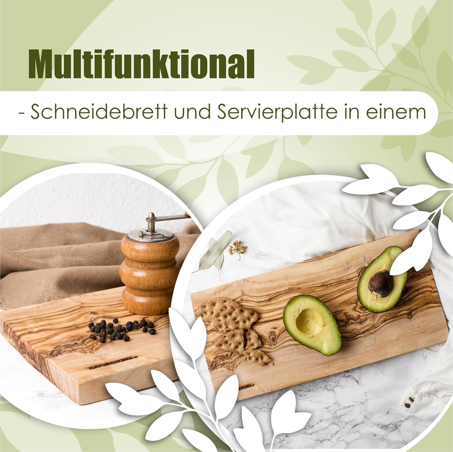 • ✔ EINZELSTÜCKE: Unser Holzschneidebrett gross wird aus einem Stück Olivenholz hergestellt. Es ist nicht geleimt und nicht chemisch zusammengeklebt. Jedes Stück ist ein Unikat, welches in unserer kleinen Olivenholz Manufaktur hergesellt wird