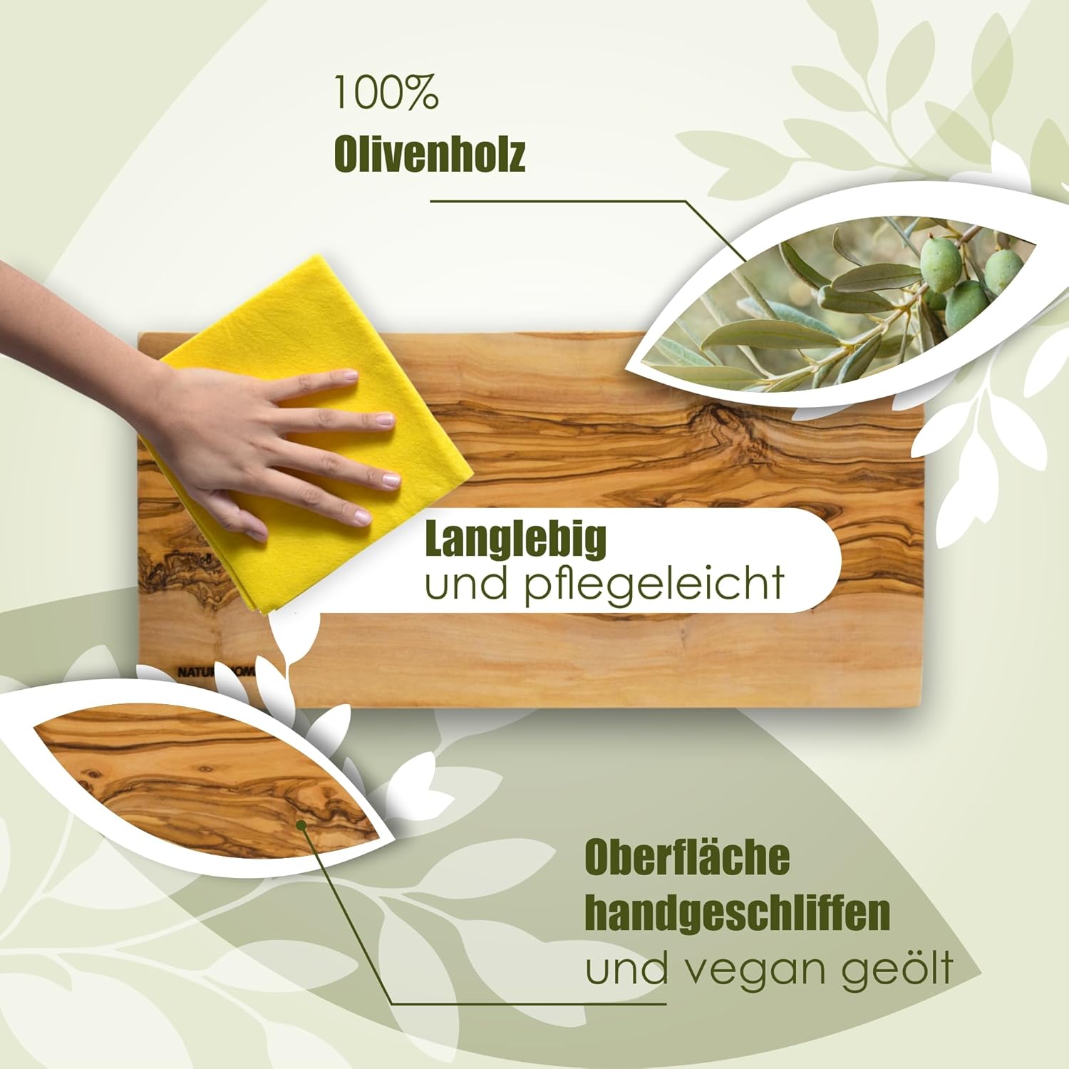 NATUREHOME massives Echtholz Schneidebrett Olivenholz gross ca. 35 x 18 x 2 cm ökologisch & nachhalt