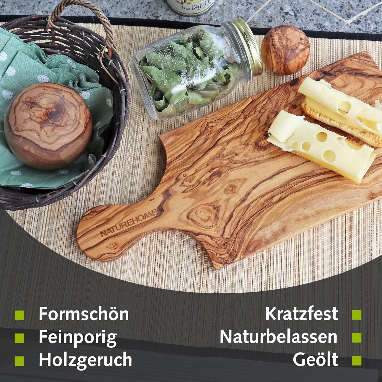 - NATURHOLZ: Das eckiges Schneidbrett oder Holz-Küchenbrett aus 100 % Olivenholz ist zum Schneiden von Fleisch, Gemüse und Brot oder als Servierbrett geeignet
