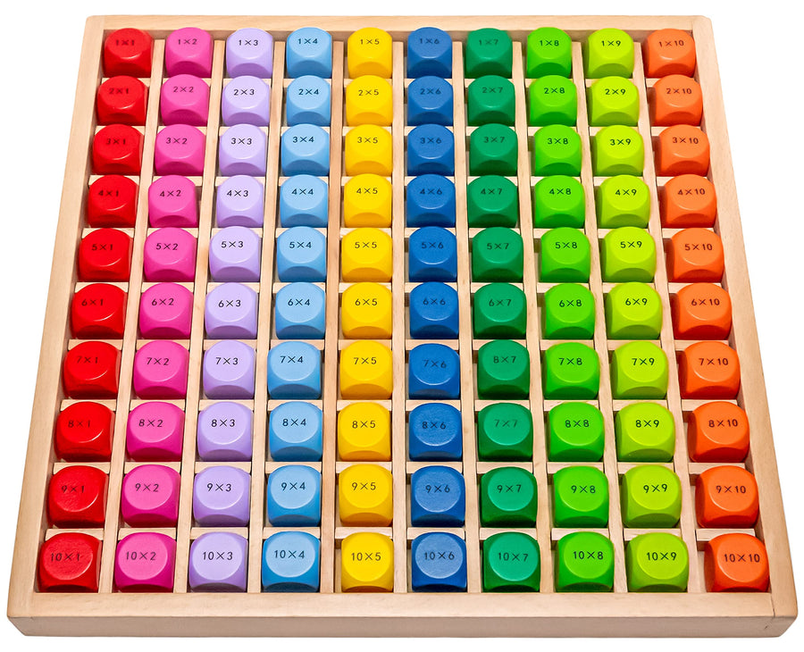 - Im Lieferumfang ist ein hölzernes Rechenbrett enthalten, das 10x10 farbige quadratische Würfel mit 1 x 1 Rechenaufgaben enthält und welche je eine Passform in dem Kasten haben, so dass alles wieder zurück an seinen Platz findet.