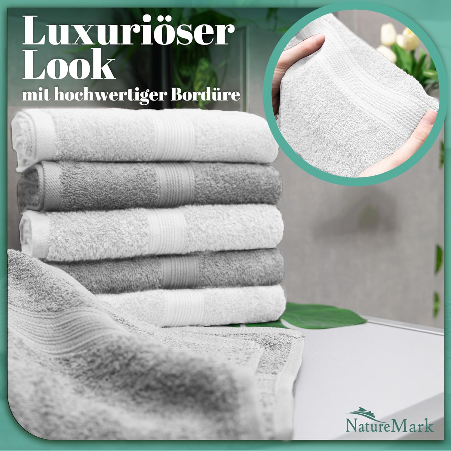 - besonders weiche und kuschelige Frottier Handtücher: 500 gr/m² Qualität, mit praktischer Aufhängeschlaufe