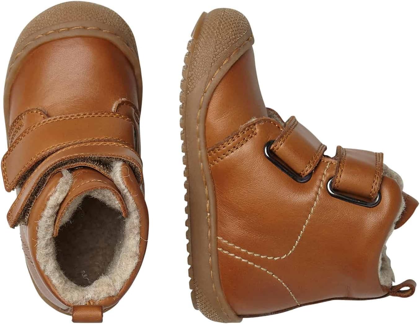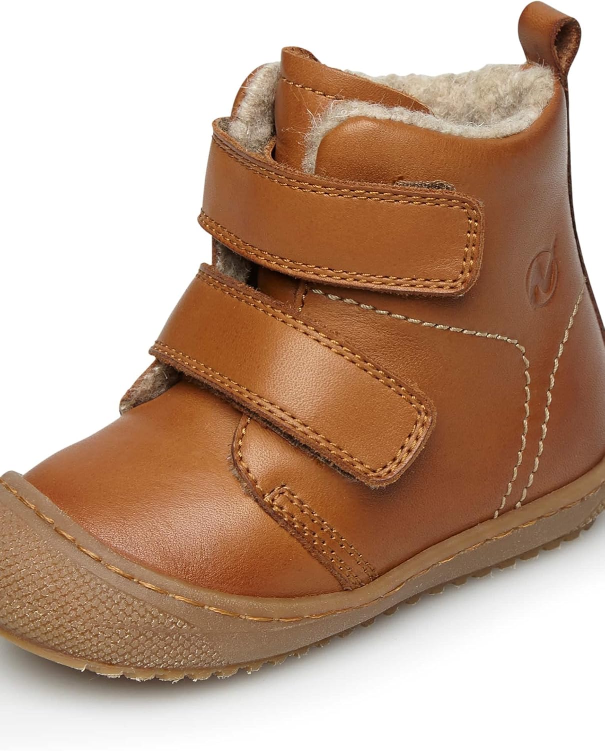 PRODUKTBESCHREIBUNGEN Knöchelstiefel mit Schaft aus gebürstetem Nappaleder in cognac-Farbe mit abgerundeter Spitze und verstellbarem Klettverschluss. Passt zu lässigen Outfits im Alltag. Die rutschfeste Unterseite sorgt dafür, dass sie auch auf nassen Strassen sicher sind, und das Wollfutter hält den Fuss auch bei niedrigen Temperaturen stand.