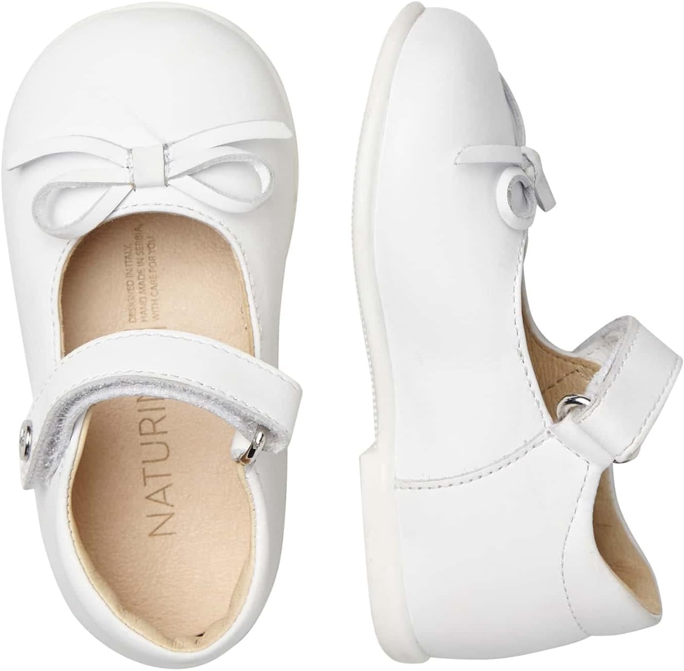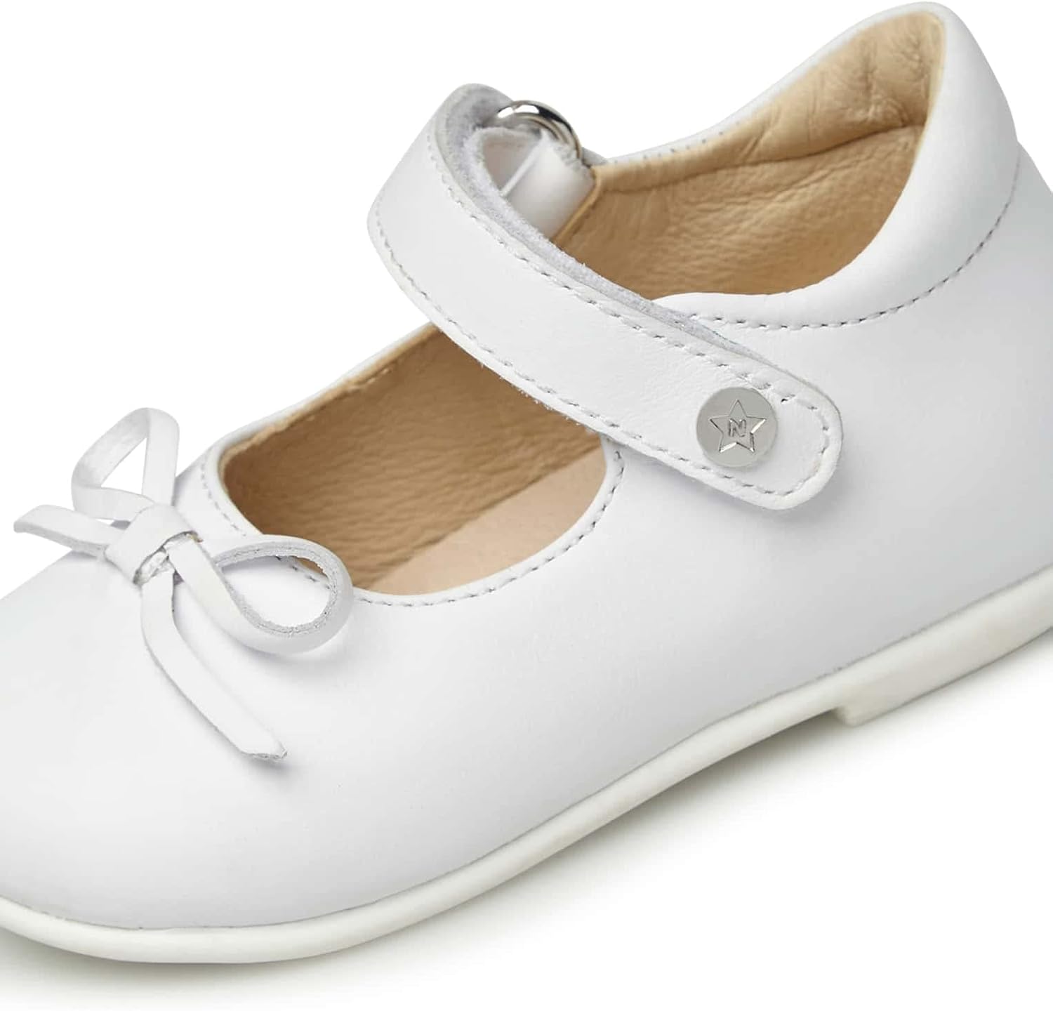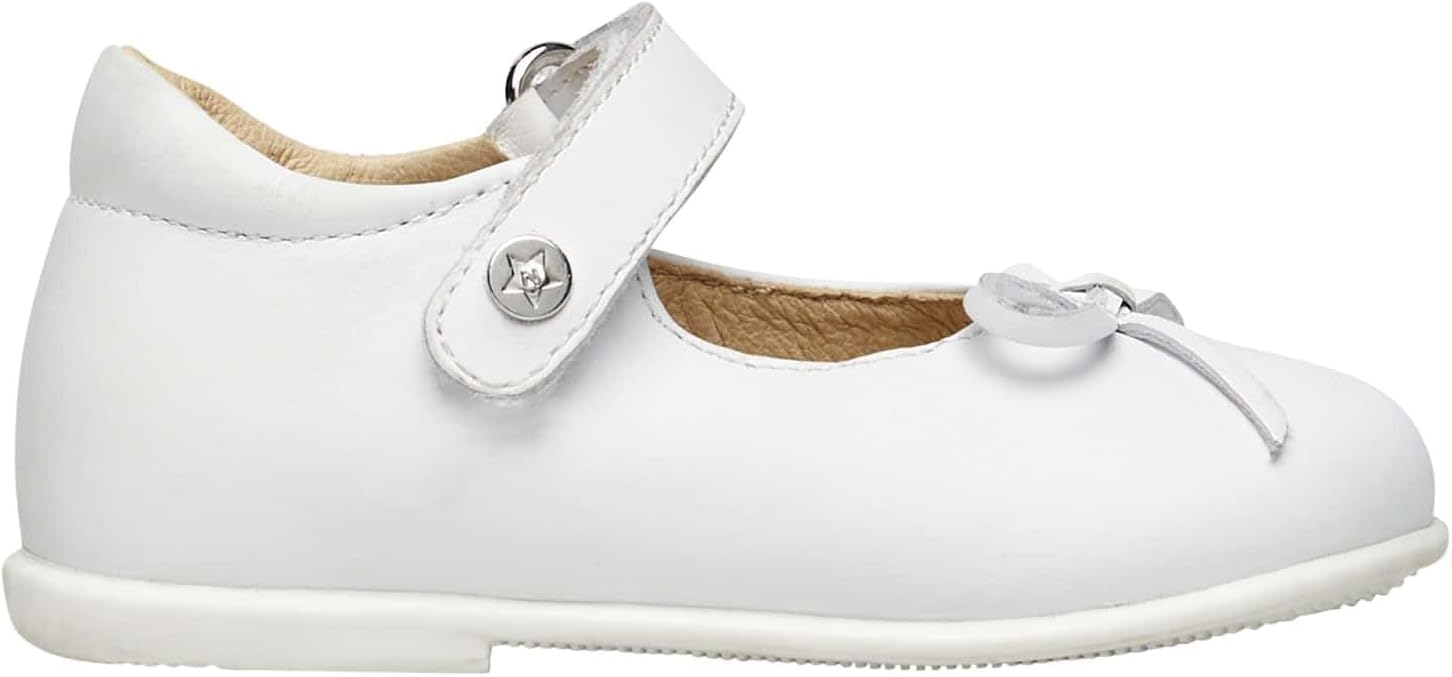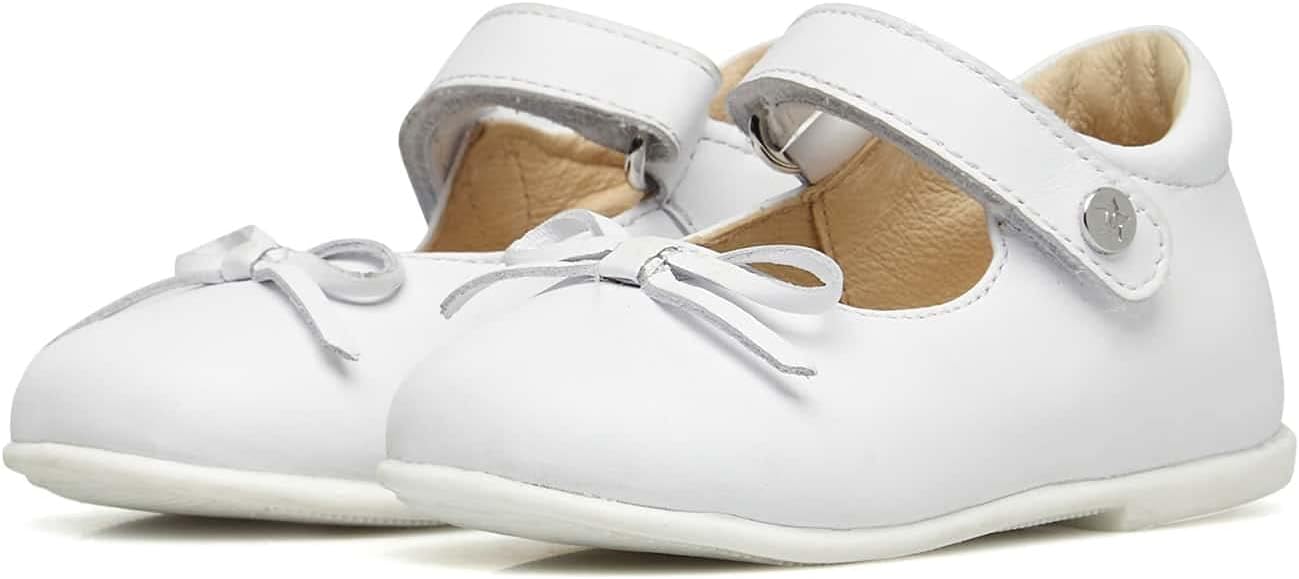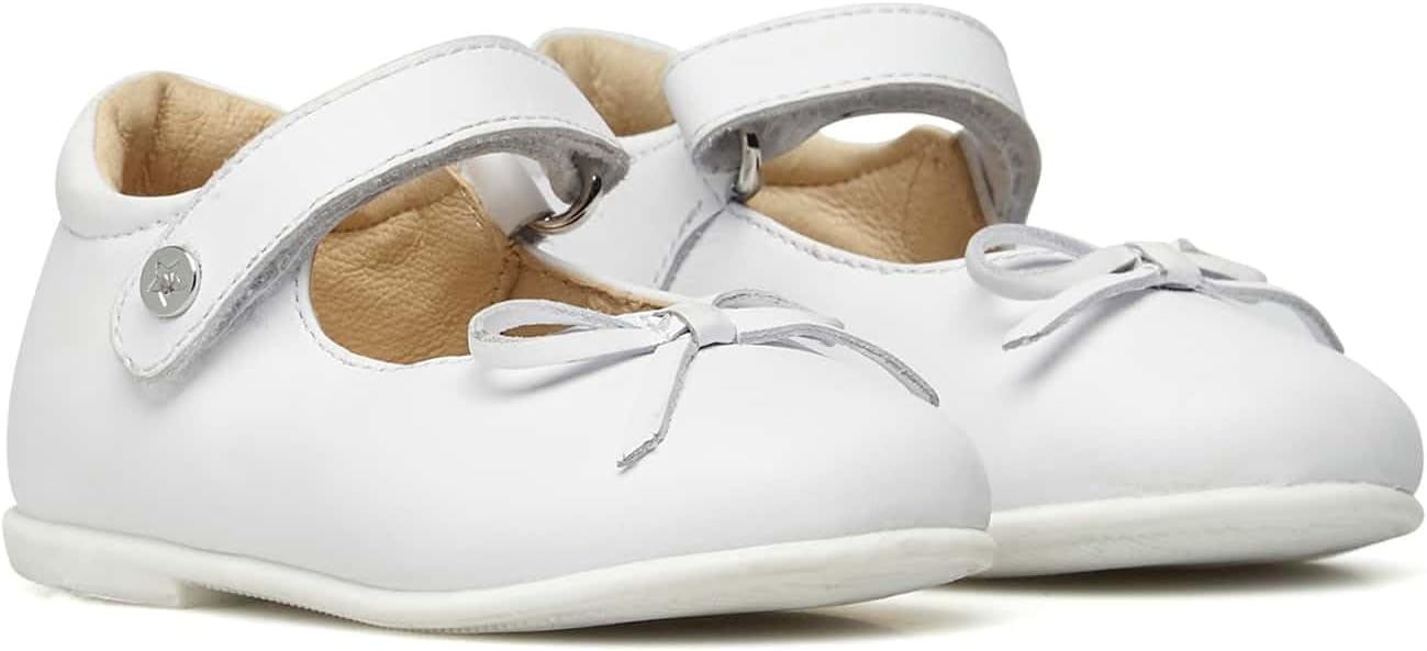 PRODUKTBESCHREIBUNGEN Der grosse Klassiker des Junior-Schuhs in aktualisierter und frischer Ausführung. Die Ballerina aus weichem Kalbsleder ist mit einer Schleife am Hals und einem verstellbaren Riemen verziert, ideal für besondere Anlässe, Spaziergänge in der Stadt oder Ausflüge mit der Mutter. Innenfutter aus Leder und rutschfester Gummiboden. Mehr