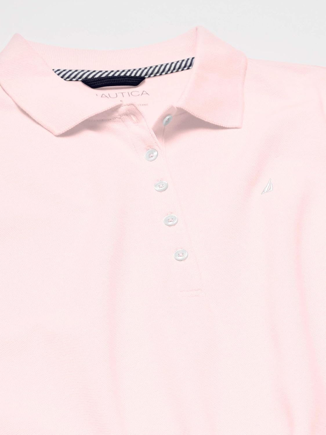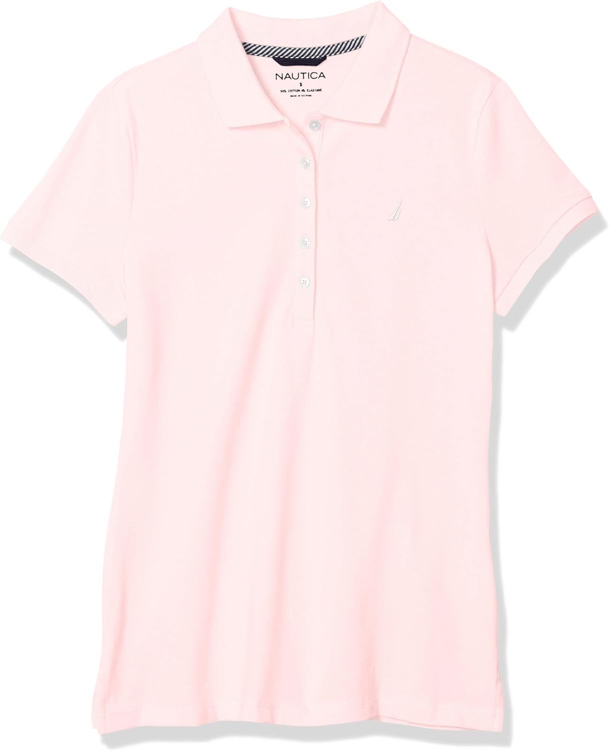 - Ribbed collar, 5-button placket