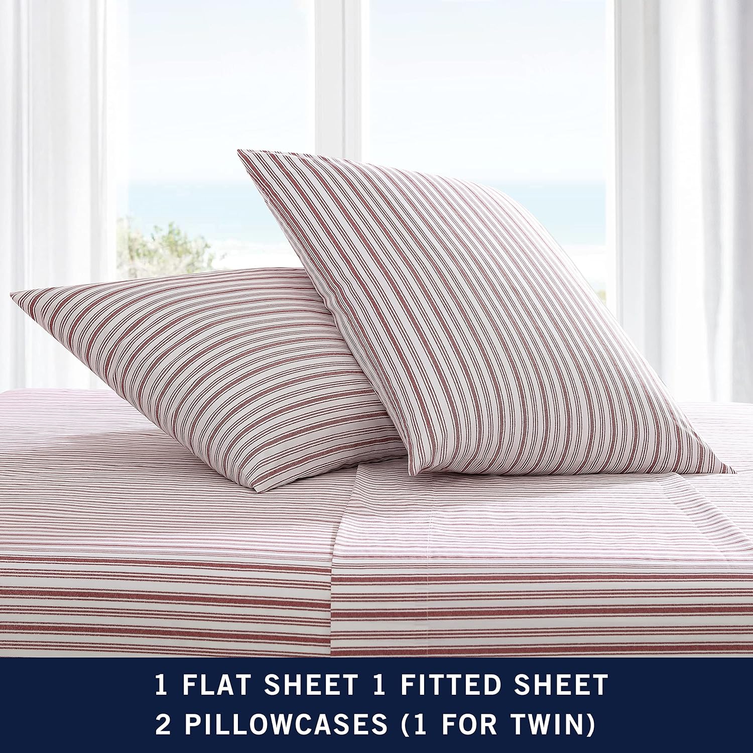 - Farbe und Haptik: Einlagiges Blatt - leicht und doch langlebig; die Fäden sind eng gewebt, um eine Glätte auf allen Sets zu gewährleisten. Das Nautica Coleridge Bettlaken-Set verfügt über ein rotes Streifenmuster auf einem weissen Untergrund