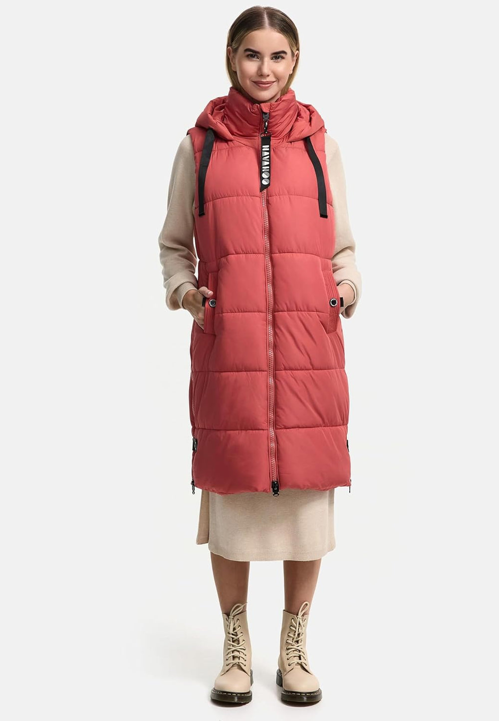 - LOOK: Lange, ärmellose Damen Langweste mit grosser, in der Weite verstellbarer Kapuze von Navahoo - richtig kombiniert ist sie ideal geeignet sowohl für die kalte Jahreszeit (Herbst und Winter), aber auch für kühle Tage im Frühling