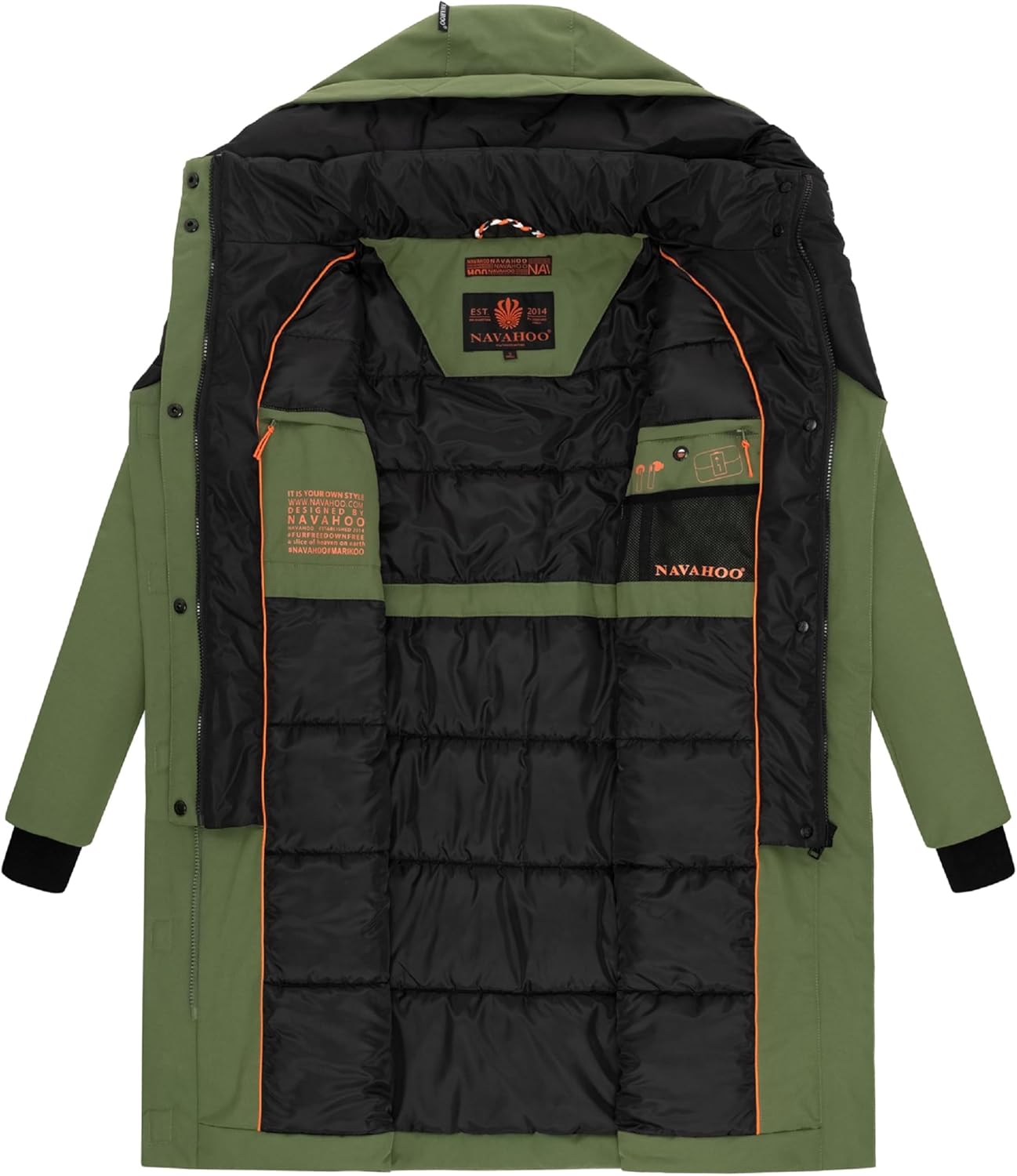 Navahoo Damen Mantel Lange warme Winter Steppjacke mit Kapuze und magnetischen Elementen Snowelf XS-