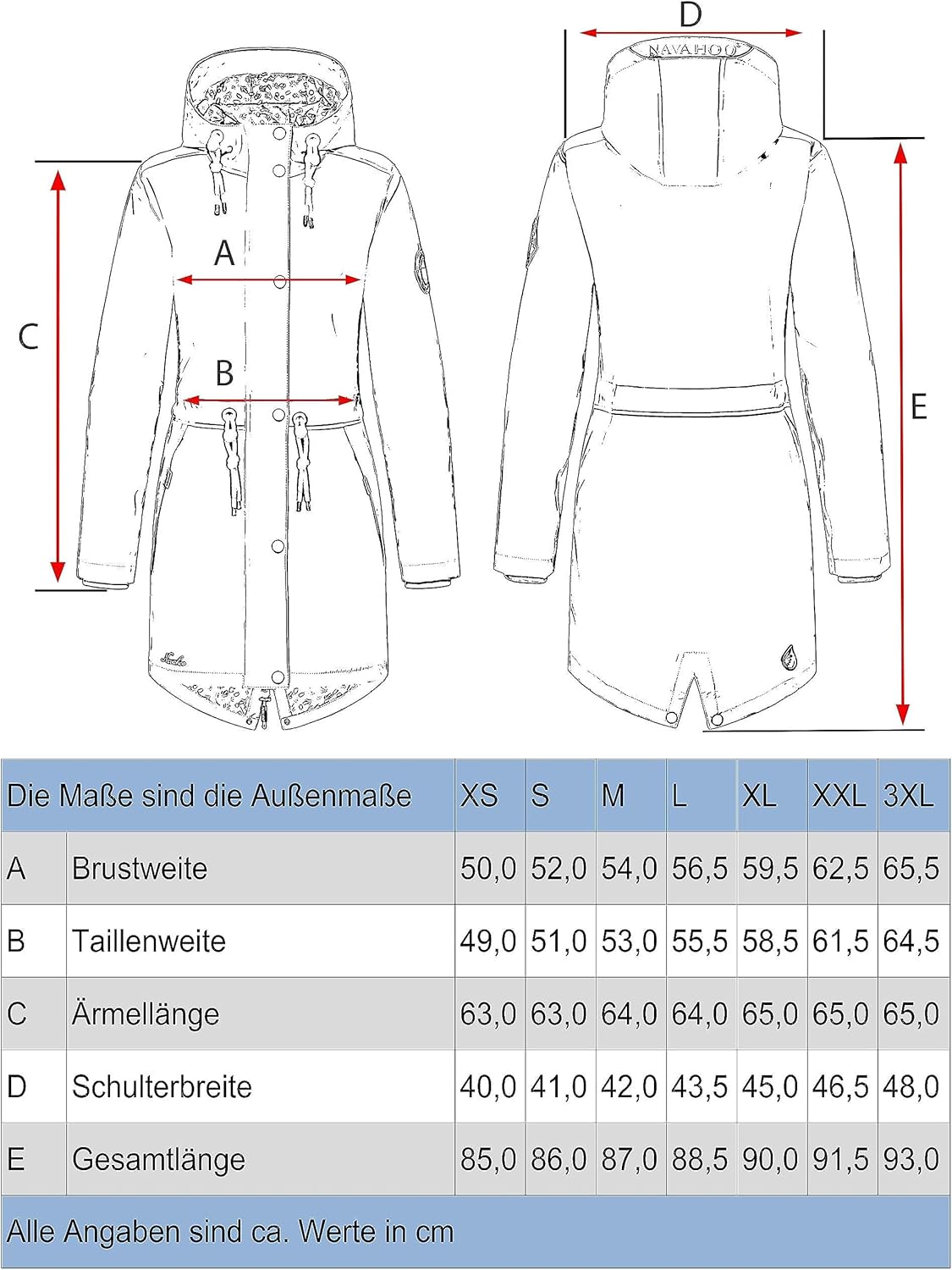 Navahoo Damen Übergangsjacke Regenmantel wasserdicht lang mit Kapuze Tropical Stormoo XS-3XL XS Rot,