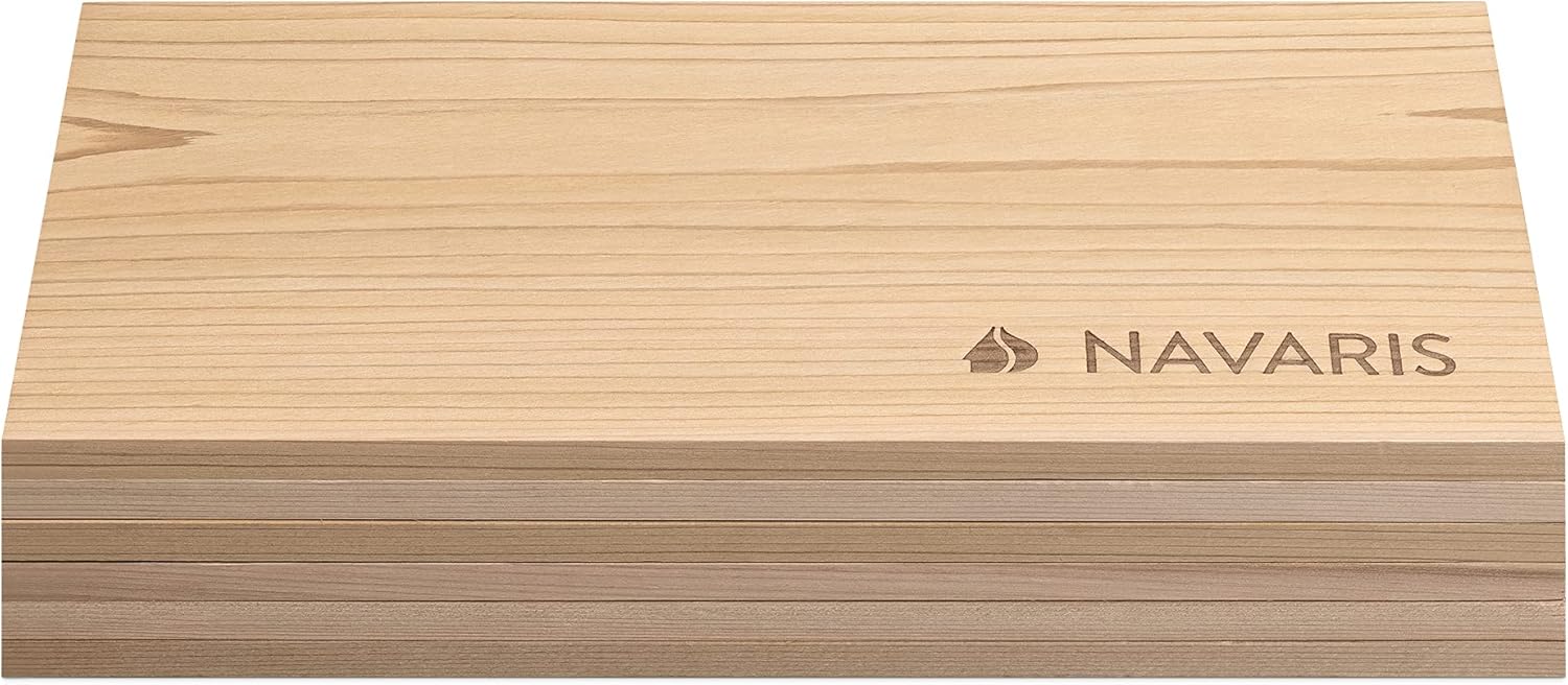 - FÜR EIN RAUCHIGES GESCHMACKSERLEBNIS: Mit dem Räucherbrett Set aus natürlichem Zedernholz von Navaris bringst Du eine einzigartig rauchige Geschmacksnote in Dein Grillgut, egal ob Fisch, Fleisch oder Gemüse.