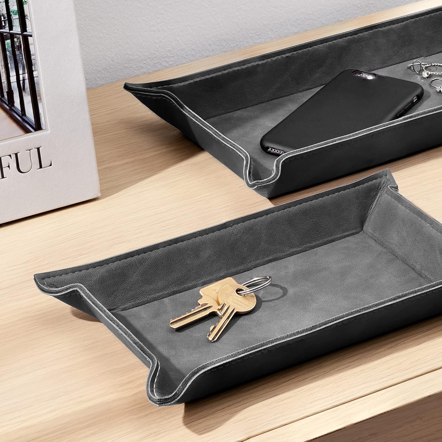- DETAILS: Im Lieferumfang enthalten sind ein grosser Taschenleerer (34x18,2x3,7cm) sowie ein kleinerer Taschenentleerer (25x15x3,7cm) aus Kunstleder. Die Organizer haben ausserdem einen Metallbodeneinsatz.