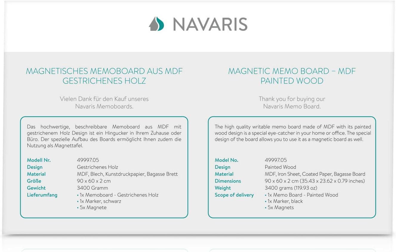 - LIEFERUMFANG: Die Memowand (90 x 60 x 2 cm) aus MDF (Pressholz), beschichtetem Papier, Bagasse und Blech kommt mit einem magnetischen Marker (Schwarz) und 5 Magneten. Zwei vorgebohrte Löcher helfen bei der Befestigung an der Wand.