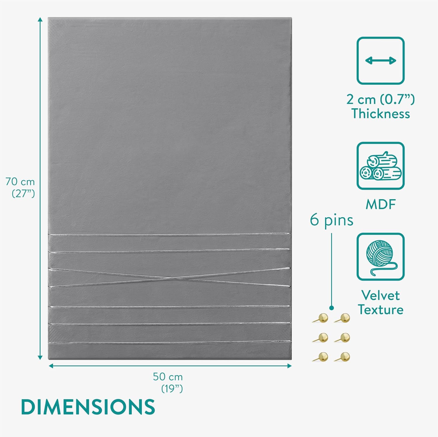 - TECHNISCHE DETAILS: Du bekommst einen Halter aus Samt für Bildercollagen oder Notizen mit den Massen 70 x 50 cm und einem Gewicht von 600 g. 6 Pinnnadeln sind im Lieferumfang enthalten.