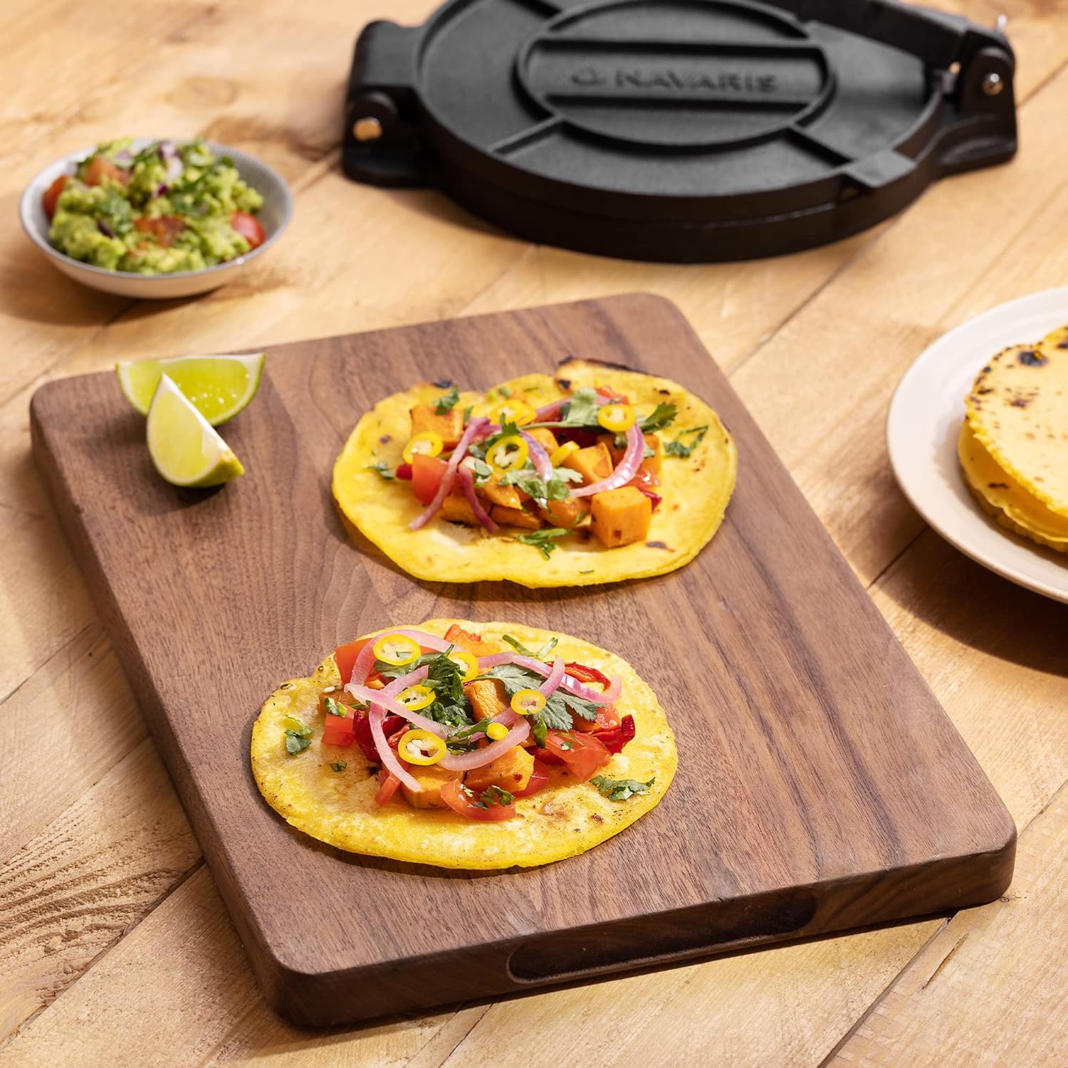 - DO IT YOURSELF: Selbstgemacht schmeckt's eben am besten! Mit der Gusseisen Presse von Navaris machst Du Tortillas, Tacos, Wrap, Naan, Quesadilla, Pita, Yufka, Roti, Chapati uvm. bei Dir zu Hause in der Küche!