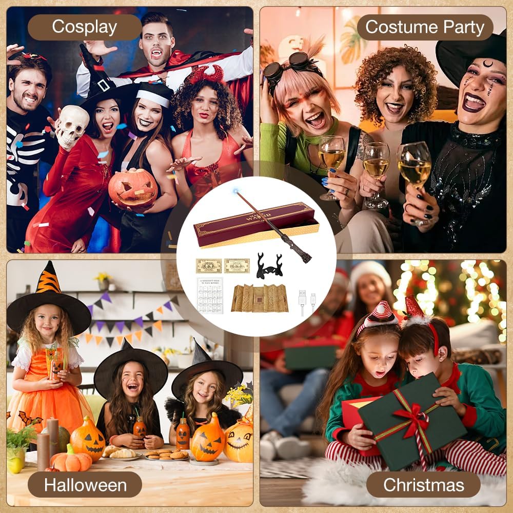 - Komplettes Sammler-Geschenkset: Die komplette Kollektion umfasst 1 Zauberstab, 1 Geschenkbox, 1 Zauberkarte, 1 Bahnfahrkarte, 1 Karte, 1 Halter und 1 USB-Kabel. Ideal, um Ihre eigene magische Zugehörigkeit zu zeigen oder einem anderen Fan ein Geschenk