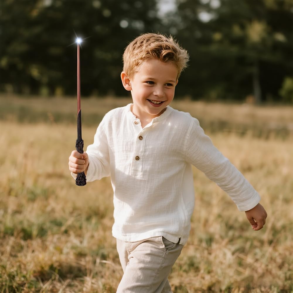 - Hochrealistischer Funkelnder Zauberstab: Dieser detailreiche Zauberstab verfügt über einen subtil platzierten Aktivierungsknopf, der seine Spitze mit einem magischen Leuchten entzündet, das sich perfekt für Zaubersprüche und Duelle eignet. Mit