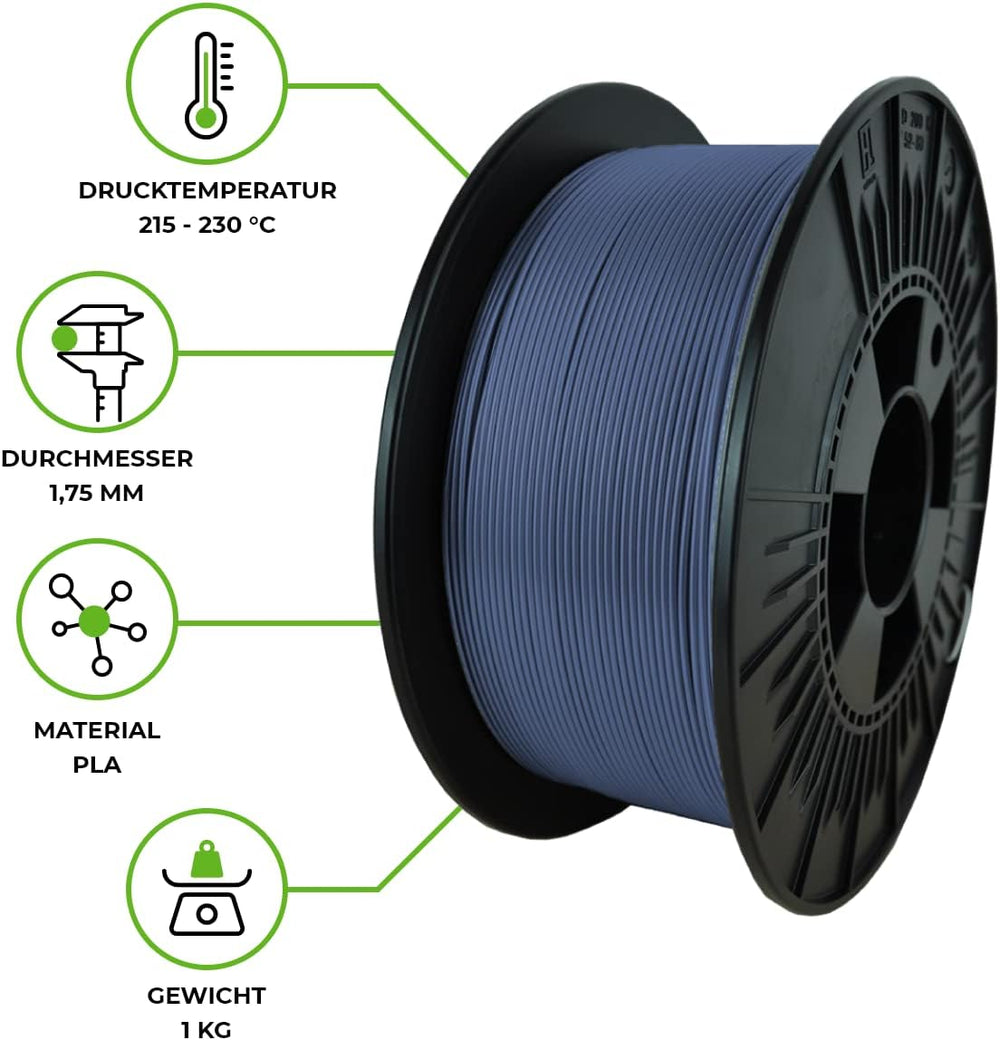 - Empfehlung: Düsentemperatur: 215-230°C, Kissentemperatur: 0-60°C. Filament 1.75 pla mit seinen genannten Eigenschaften ist ideal zum Bedrucken grösserer Bauteile bzw grössere mechanisch belastete Bauteile