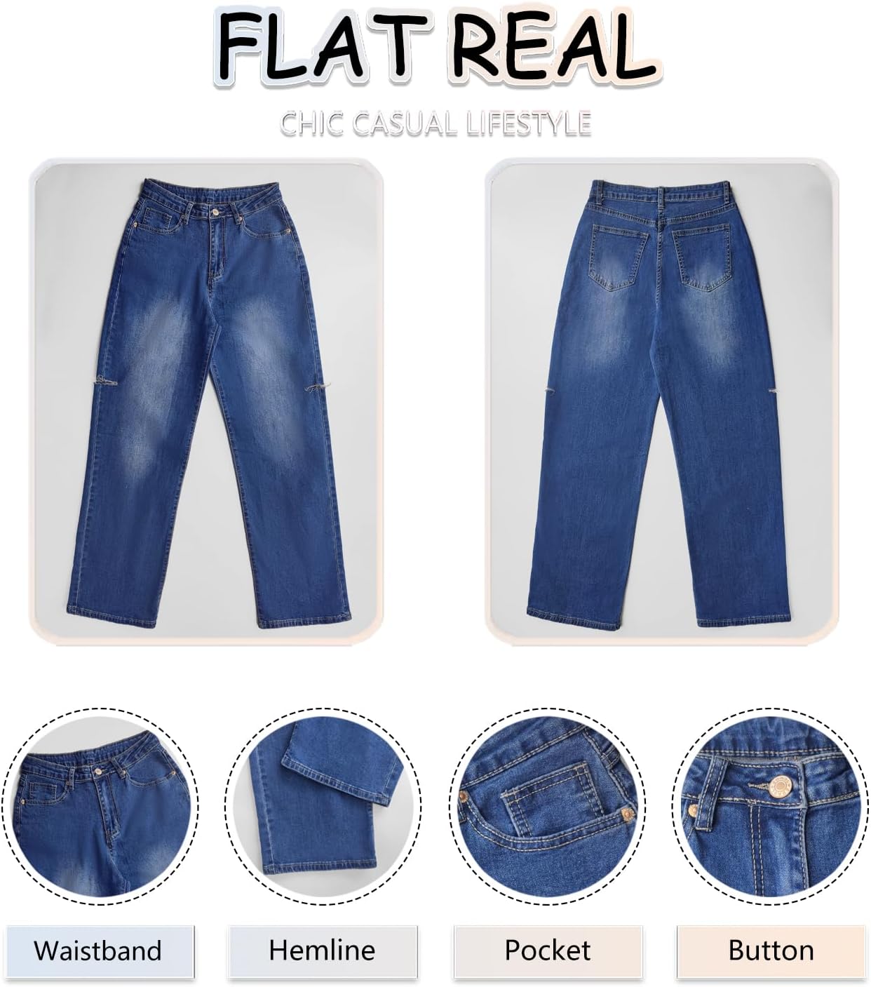 - 【Design】Diese Jeans mit weitem Bein hat eine hohe Taille und einen einfachen Knopf, die Hose hat eine einzigartige Öffnung an der Seite des Knies, was die einfache Jeans einzigartig macht, die verlängerte Länge macht die Beine proportional