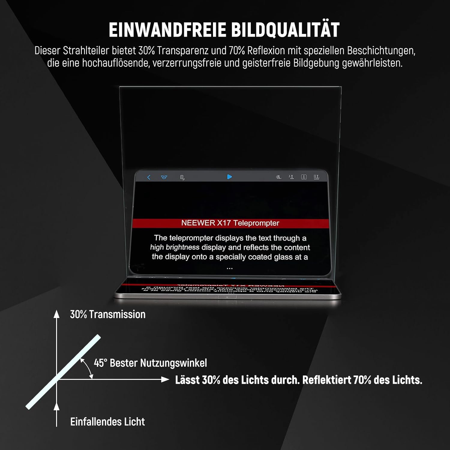• 【Professionelles Teleprompter Glas】 NEEWER HD Würfel Strahlenteiler wurde mit höchster Handwerkskunst für kristallklare Reflexion konstruiert. Seine perfekte 30T/70R Lichtdurchlässigkeit sorgt für klare Informationsübermittlung und ermöglicht