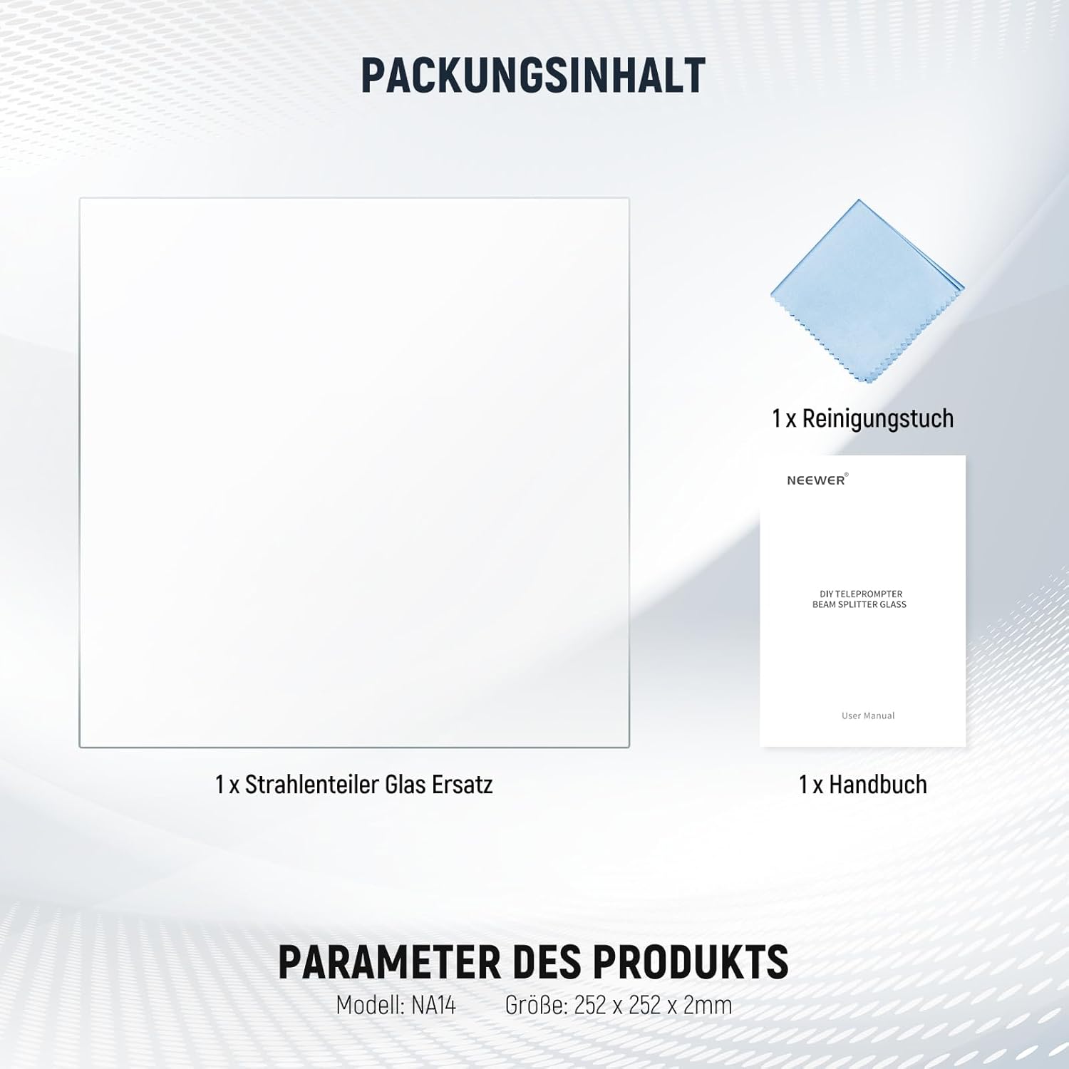 • 【Ersatzglas für DIY Teleprompter】 Als wesentlicher Bestandteil von DIY Telepromptern bietet das geisterfreie Strahlteilerglas NEEWER NA14 ein besseres visuelles Erlebnis als gewöhnliches Glas und ist somit eine kostengünstige Wahl für DIY