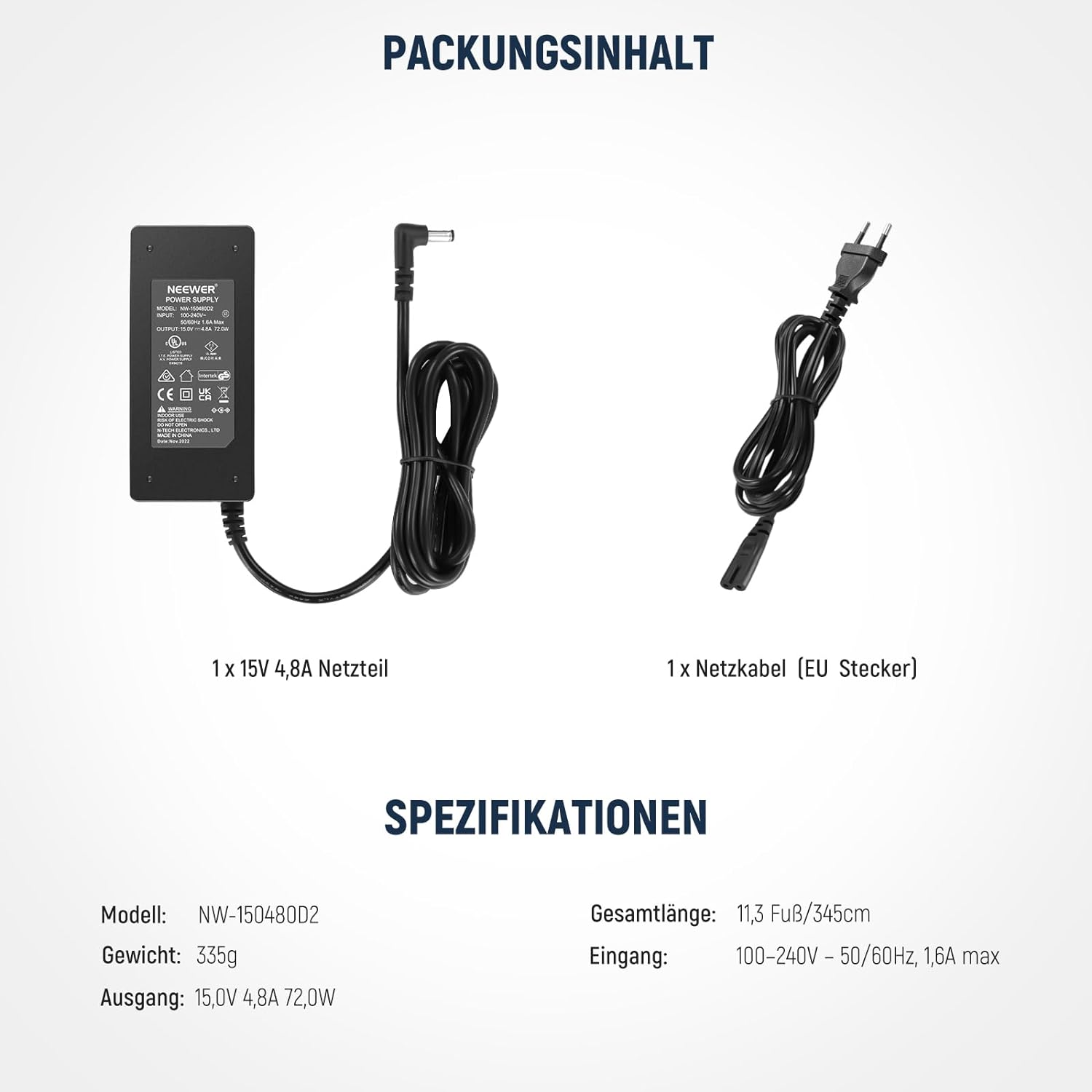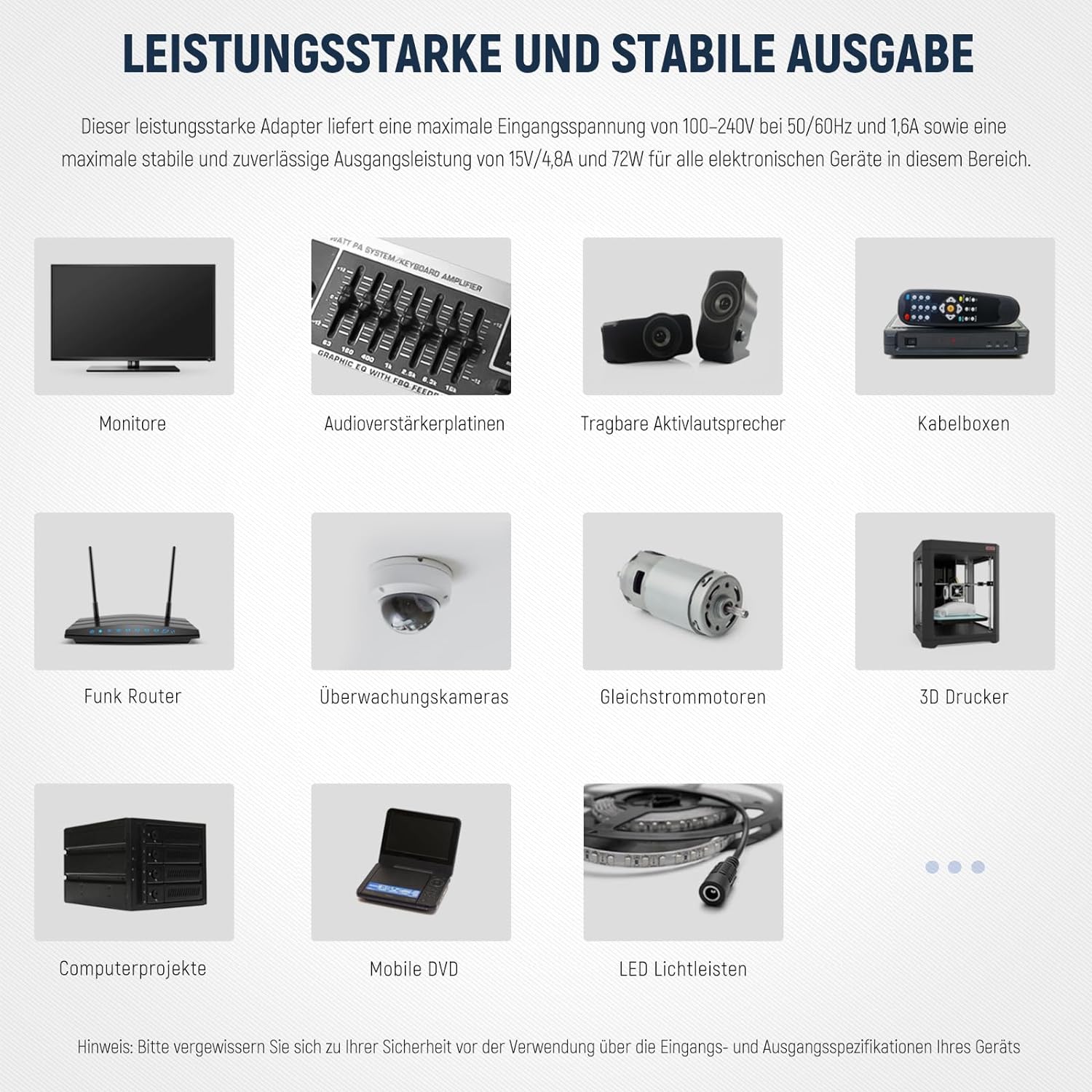 - 【15V/4,8A 72W Ausgang】 Dieser leistungsstarke Adapter und das Kabel liefern einen maximalen Eingang von 100–240V bei 50/60Hz und 1,6A, mit einem maximalen stabilen und zuverlässigen Ausgang von 15V/4,8A und 72W für alle elektronischen Geräte