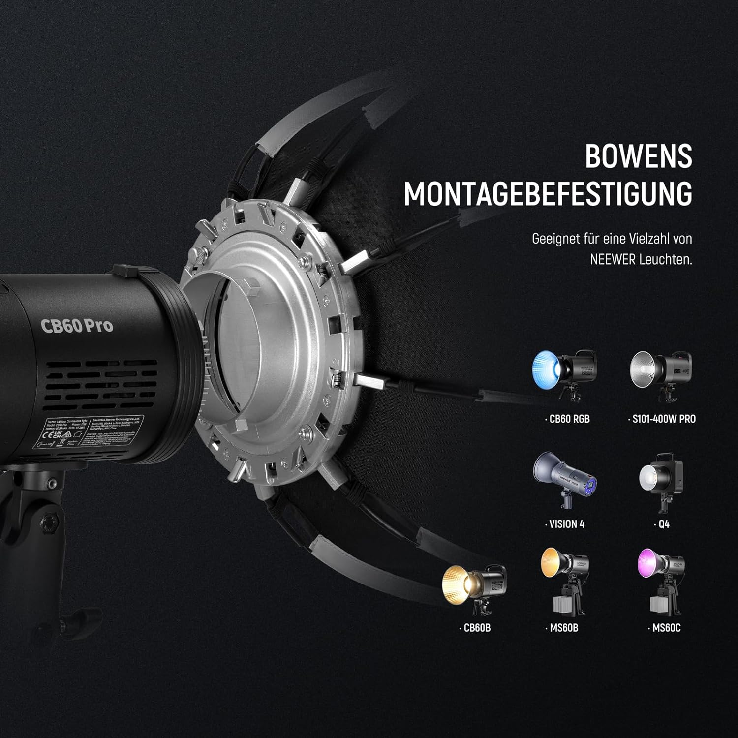 • 【Standard Bowens Halterung】 Nahtlos kompatibel mit Godox sl60w Aputure Amaran 60D 60x S NEEWER Q4 Vision 4 CB200B RGB CB60 MS60B MS60C MS150B und anderen BowensHalterung Studio Blitze und kontinuierlichen LED Videoleuchten
