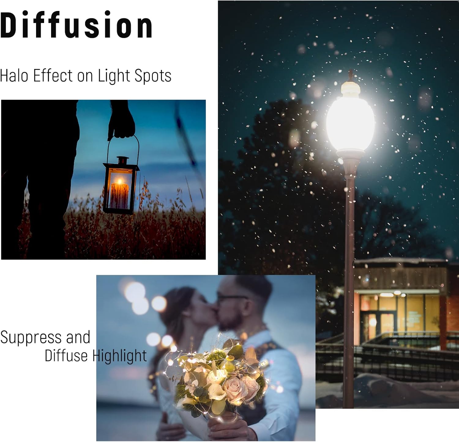 - Schwarzer Diffusions-Kameraobjektivfilter: NEEWER 58 mm schwarzer Diffusions-1-Filter mit verträumtem Kinoeffekt hilft, Highlights zu reduzieren und die Blendung zu senken, wodurch die Haut glatter aussieht und dem Ton ein trüberes und weicheres