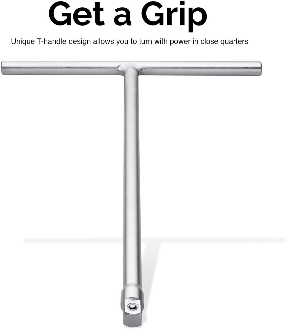 - Ein Werkzeug erledigt die Aufgabe: Dieser robuste T-Griff nimmt 3/8-Zoll-Stecknuss-Laufwerke auf, so dass ein T-Schraubenschlüssel mehrere Anwendungen bewältigt
