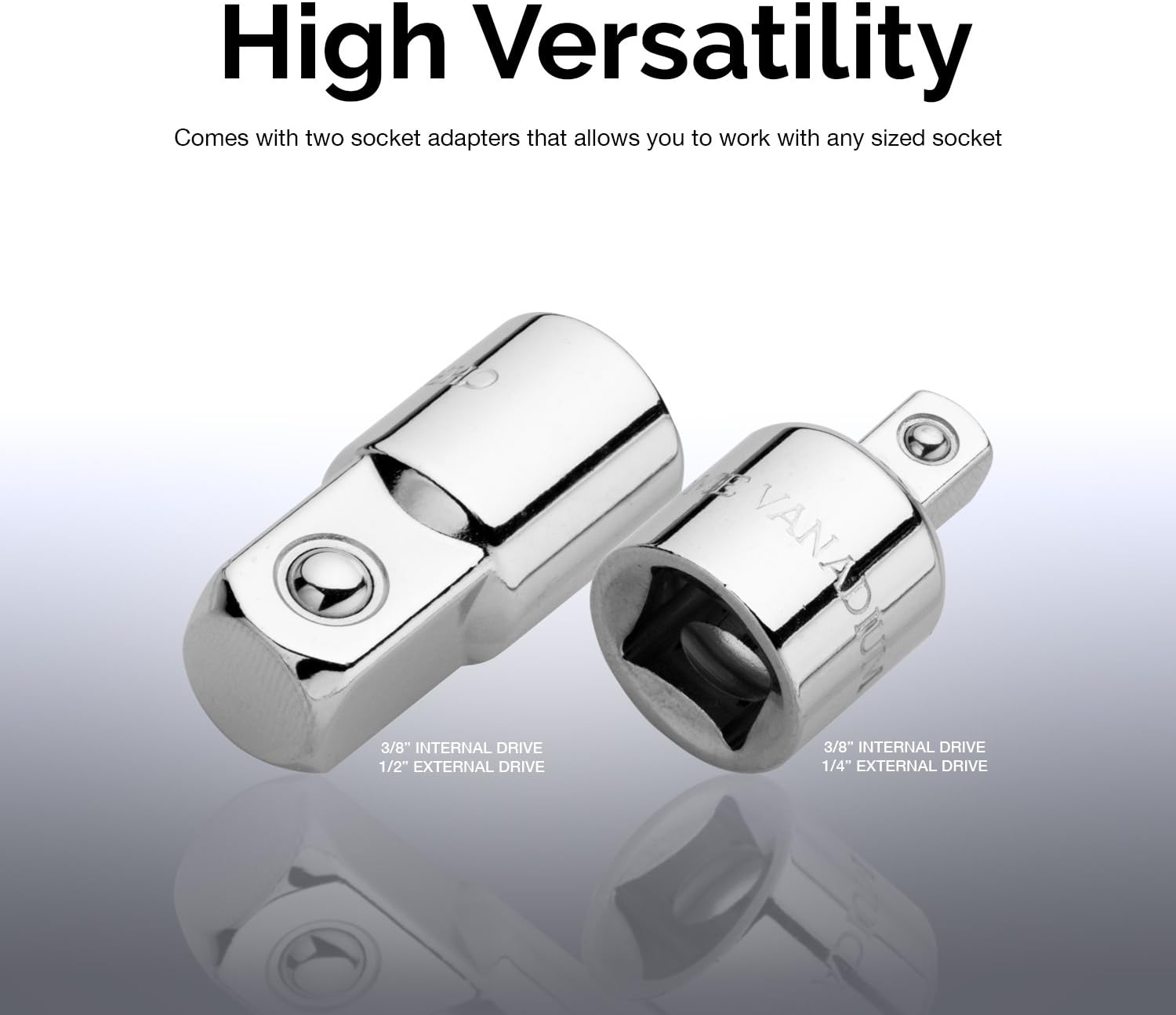 - Inklusive Adapter: Enthält ein internes 3/8-Zoll-Laufwerk und ein externes _-Zoll-Laufwerk
