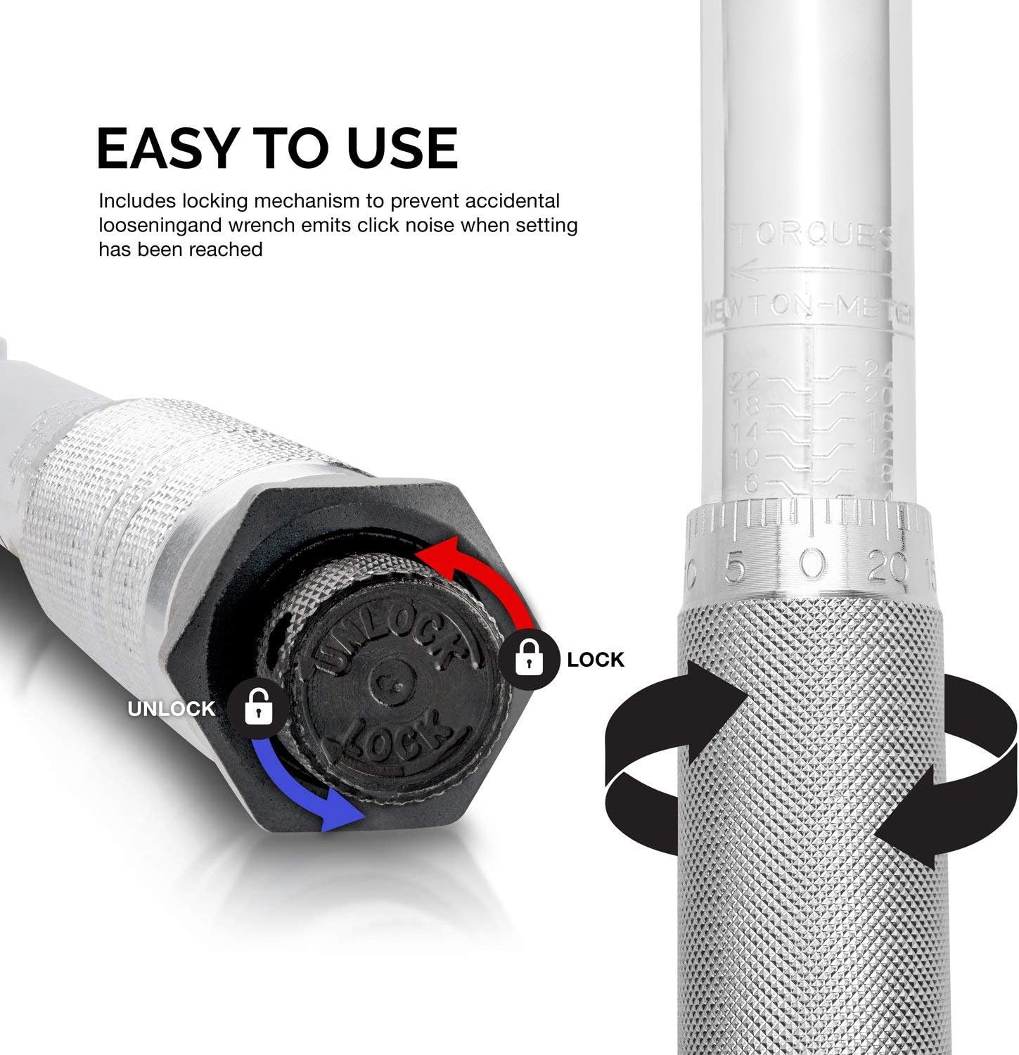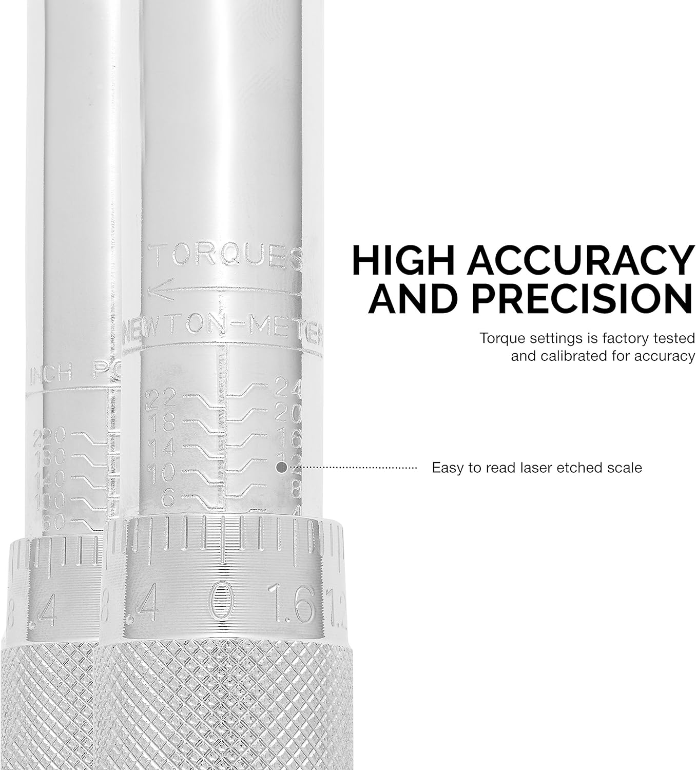 • Ansprechender Drehmomentschlüssel: Maschinell getestet und kalibriert auf +/- 4 %, um die Vermeidung von Brechen oder Überziehen von Schrauben zu verhindern.