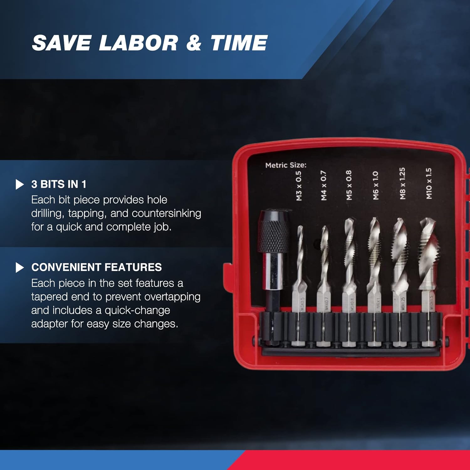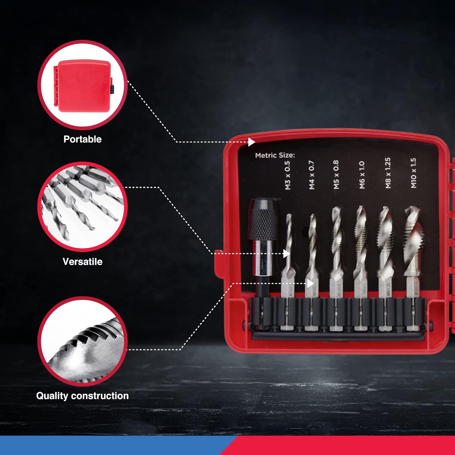 - 3-in-1 metrisches Bohrer-Set: Dieses innovative Bohrer- und Gewindebohrer-Set erledigt drei Aufgaben in einem, was jeder Arbeit Geschwindigkeit und Effizienz verleiht. Jedes Bit Stück bietet Bohren, Gewindebohren und Versenken für eine schnelle und
