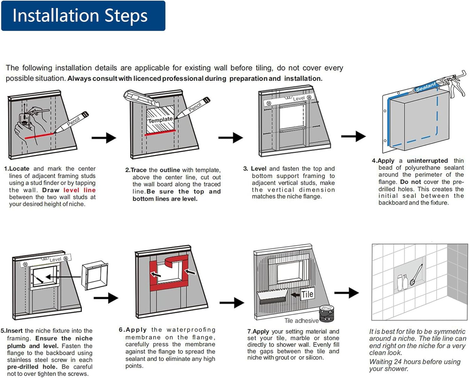 - Platzsparend: Eingebaute Duschnische zur einfachen Organisation und Aufbewahrung von Seife, Shampoo und anderen Duschutensilien für ein sauberes und komfortables Badezimmer