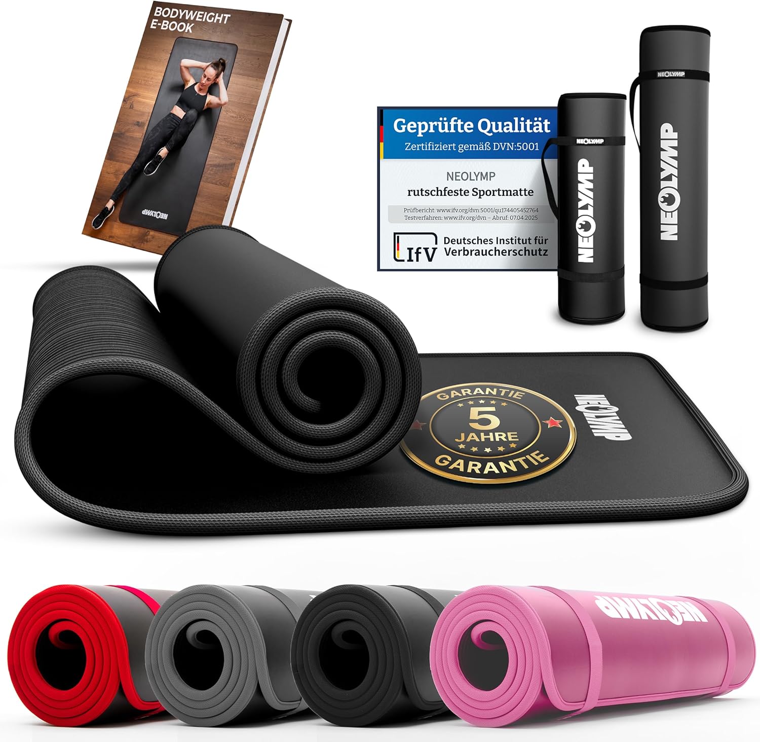 - Mit dem NEOLYMP E-Book erhältst du umfangreiche Bodyweight-Übungen und Anleitungen zum Training mit deiner Fitnessmatte. Die Übungen auf der Sportmatte sind ideal um dein Krafttraining, Muskelaufbau oder Abnehm-Ziel erreichen zu können. Die Übungen