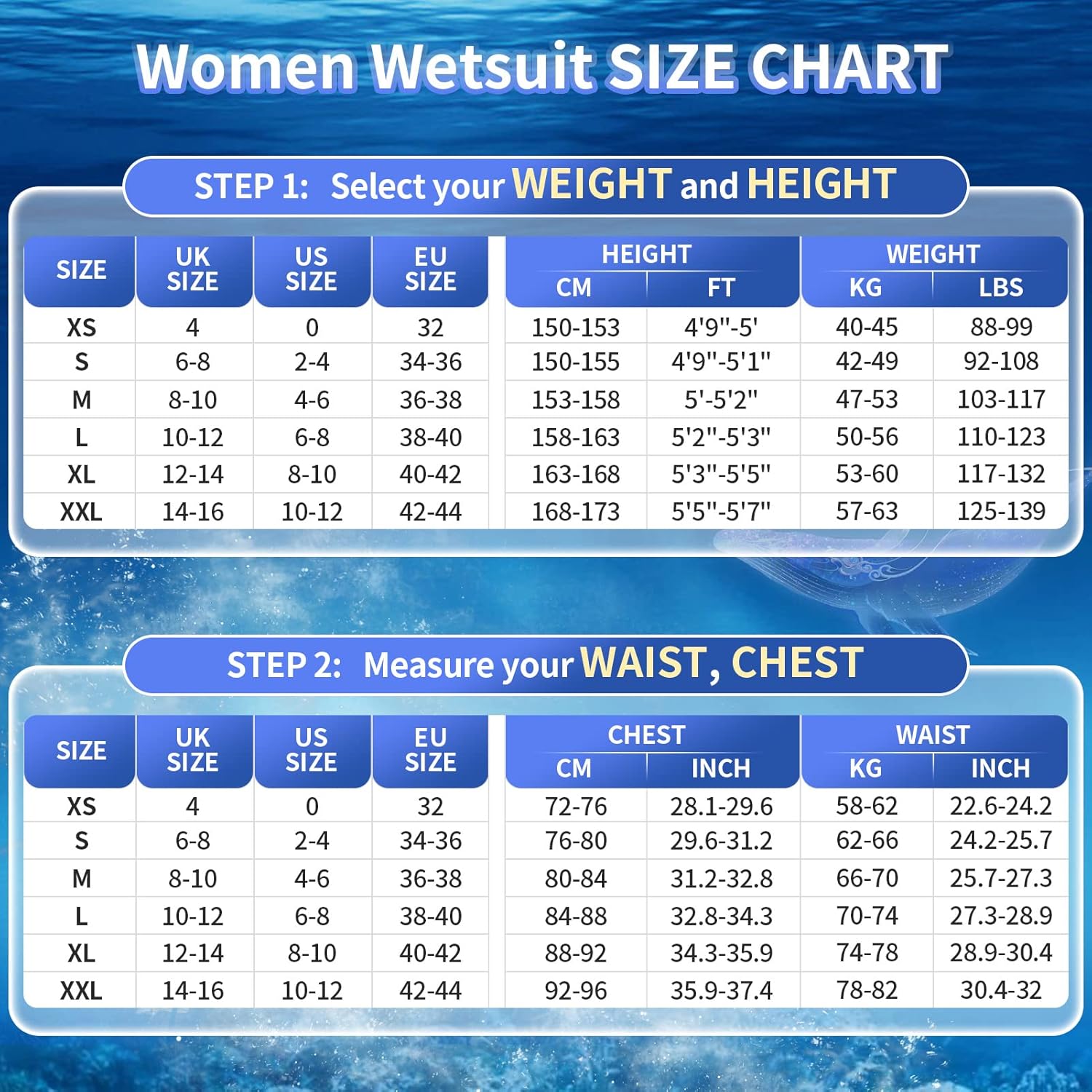 • KEEP WARM -PROTAURI Neoprenanzüge für Frauen werden durch hochwertiges Neopren warm gehalten. Der Neoprenanzug funktioniert, indem er eine dünne Wasserschicht zwischen dem Neopren und Ihrer Haut einschliesst, so dass Sie nass werden. Das Wasser