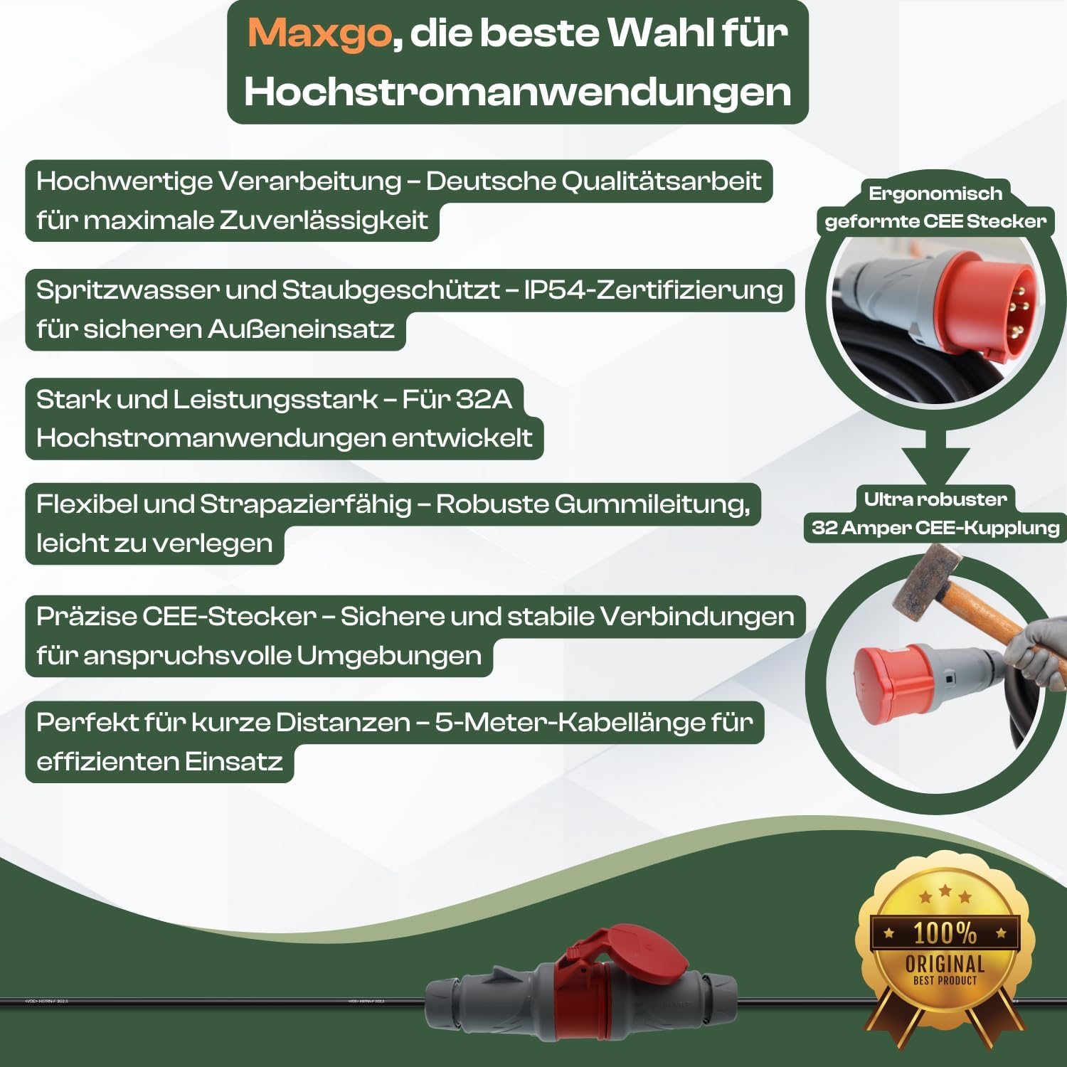 - Diese Starkstromverlängerung wird von uns eigenständig in Deutschland montiert und auf Sicherheit geprüft.