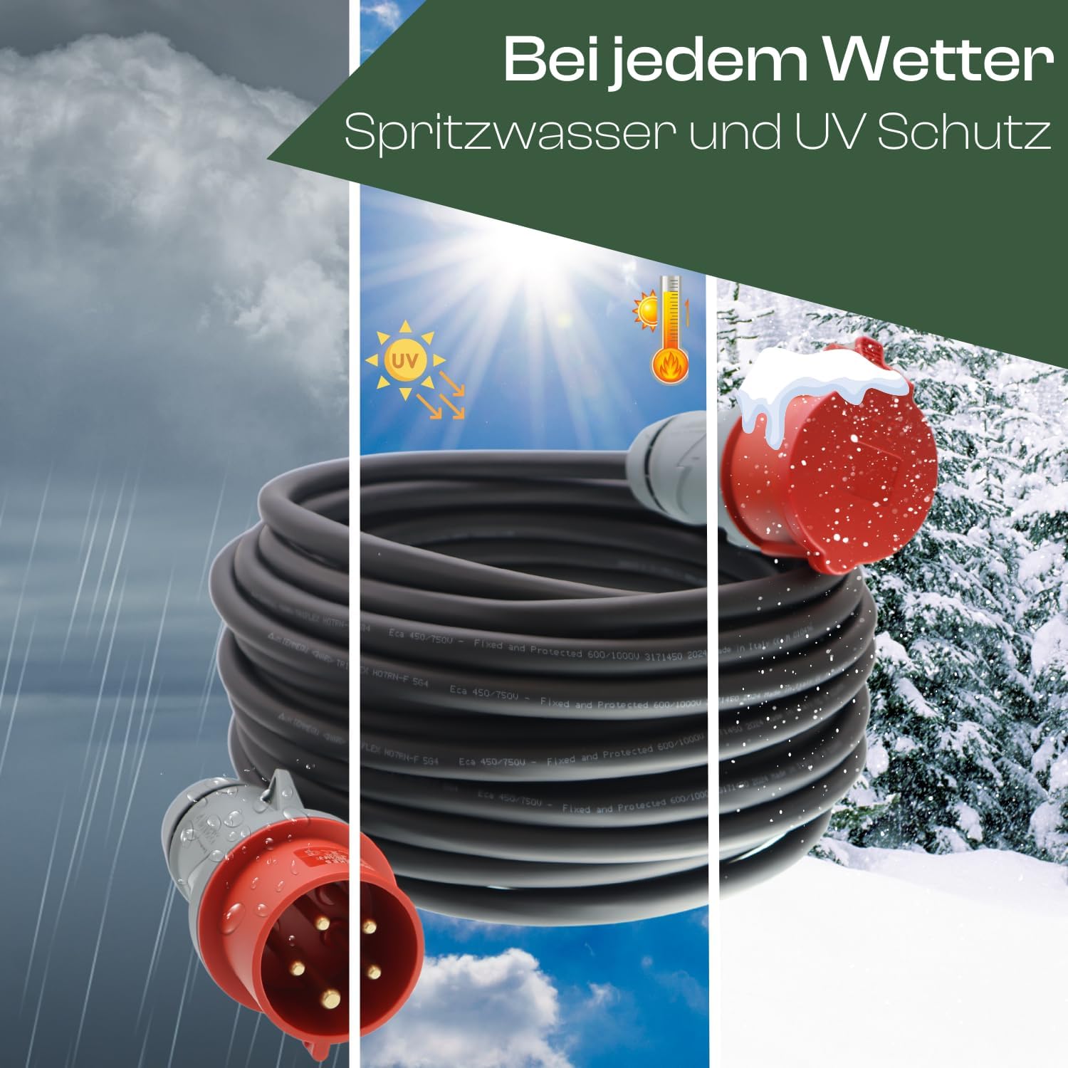 - Hochwertige CEE Starkstrom Verlängerungsleitung wahlweise mit Phasenwender. Für eine dauerhafte Verwendung im Freien ideal geeignet.