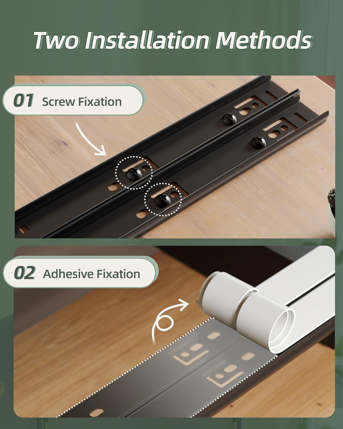 - 【EINFACHE INSTALLATION】Keine Notwendigkeit, Löcher zu stanzen und Nägel zu hämmern, wischen Sie einfach die Montageoberfläche zuerst sauber, setzen Sie selbstklebende Aufkleber auf die Schienenposition, dann reissen Sie die selbstklebenden