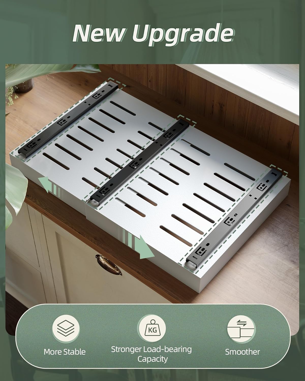 • 【SUPERIOR WEIGHT BURDENING CAPACITY】Der ausziehbare Schrankorganisator hat drei Gleitschienen! Hergestellt aus hochwertigem Kohlenstoffstahl, beschichtet mit schwarzer Backfarbe, robuste Struktur, wasserdicht und korrosionsbeständig. Jede