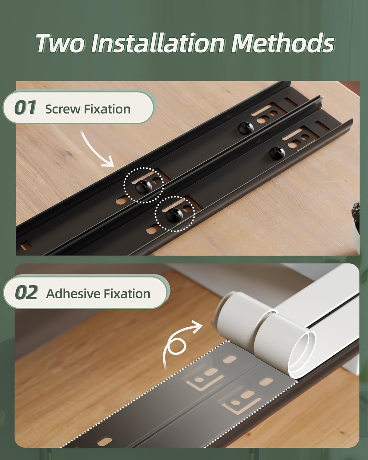 • 【EINFACHE INSTALLATION】Keine Notwendigkeit, Löcher zu stanzen und Nägel zu hämmern, wischen Sie einfach die Montageoberfläche zuerst sauber, setzen Sie selbstklebende Aufkleber auf die Schienenposition, dann reissen Sie die selbstklebenden