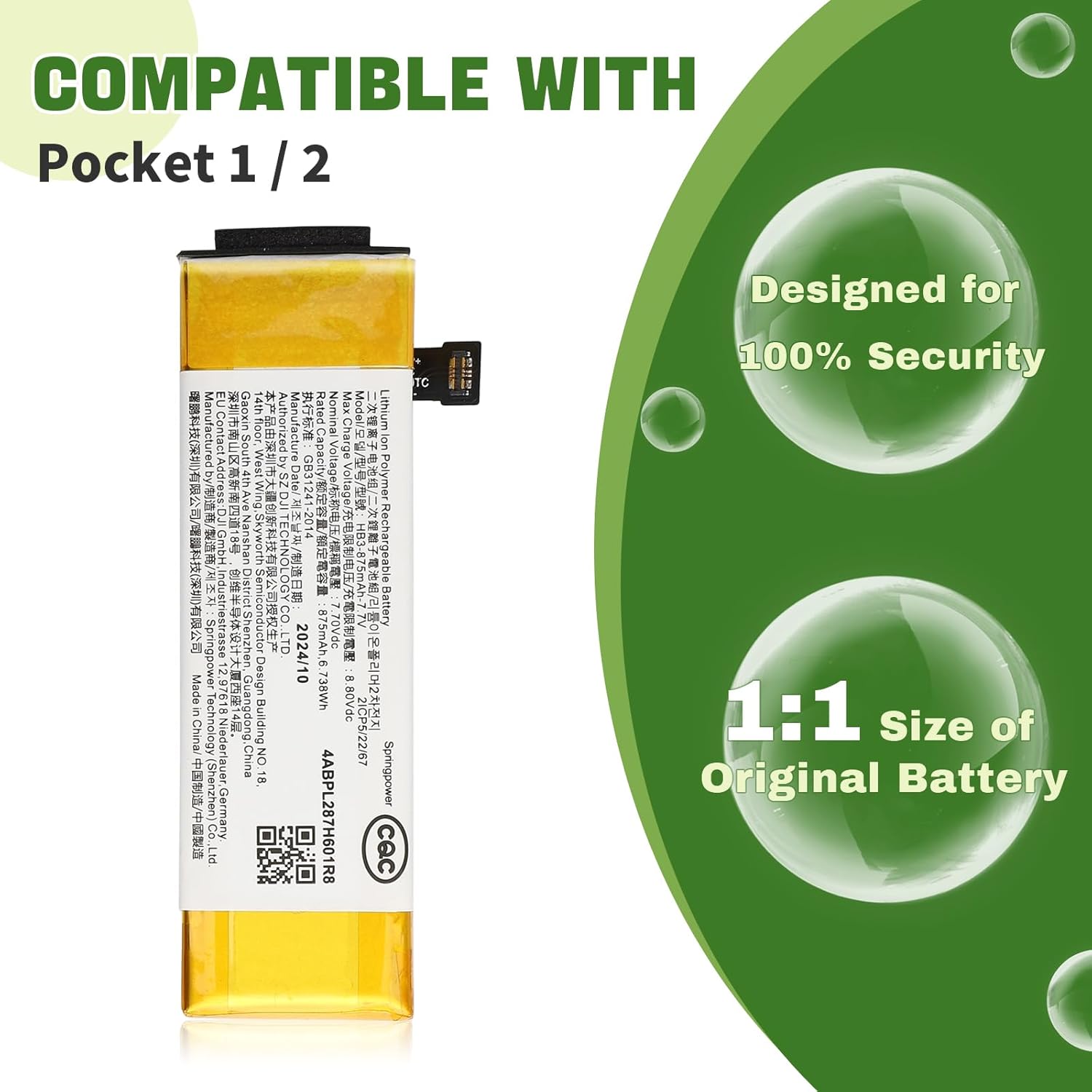 - Kompatibel mit: Für Pocket 1;Battery Model: :HB3-875; Bitte bestätigen Sie Ihren Batterietyp vor dem Kauf.